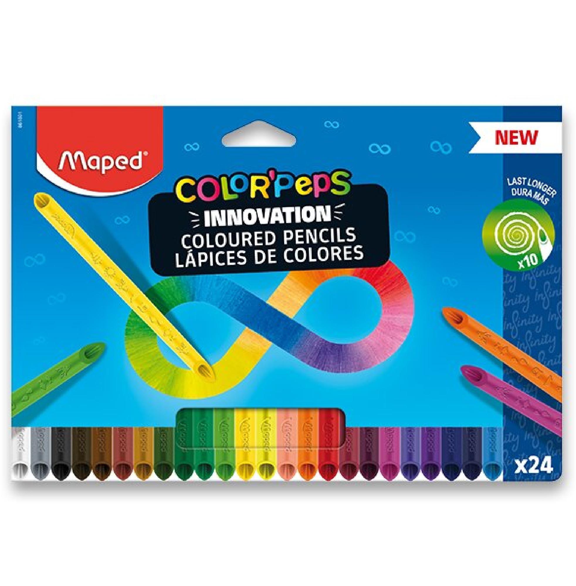 Popis:Souprava 24 ks bezdřevých pastelek Maped Color'Peps Infinity s originálním patentovaným designem, který umožňuje kreslit oběma stranami.