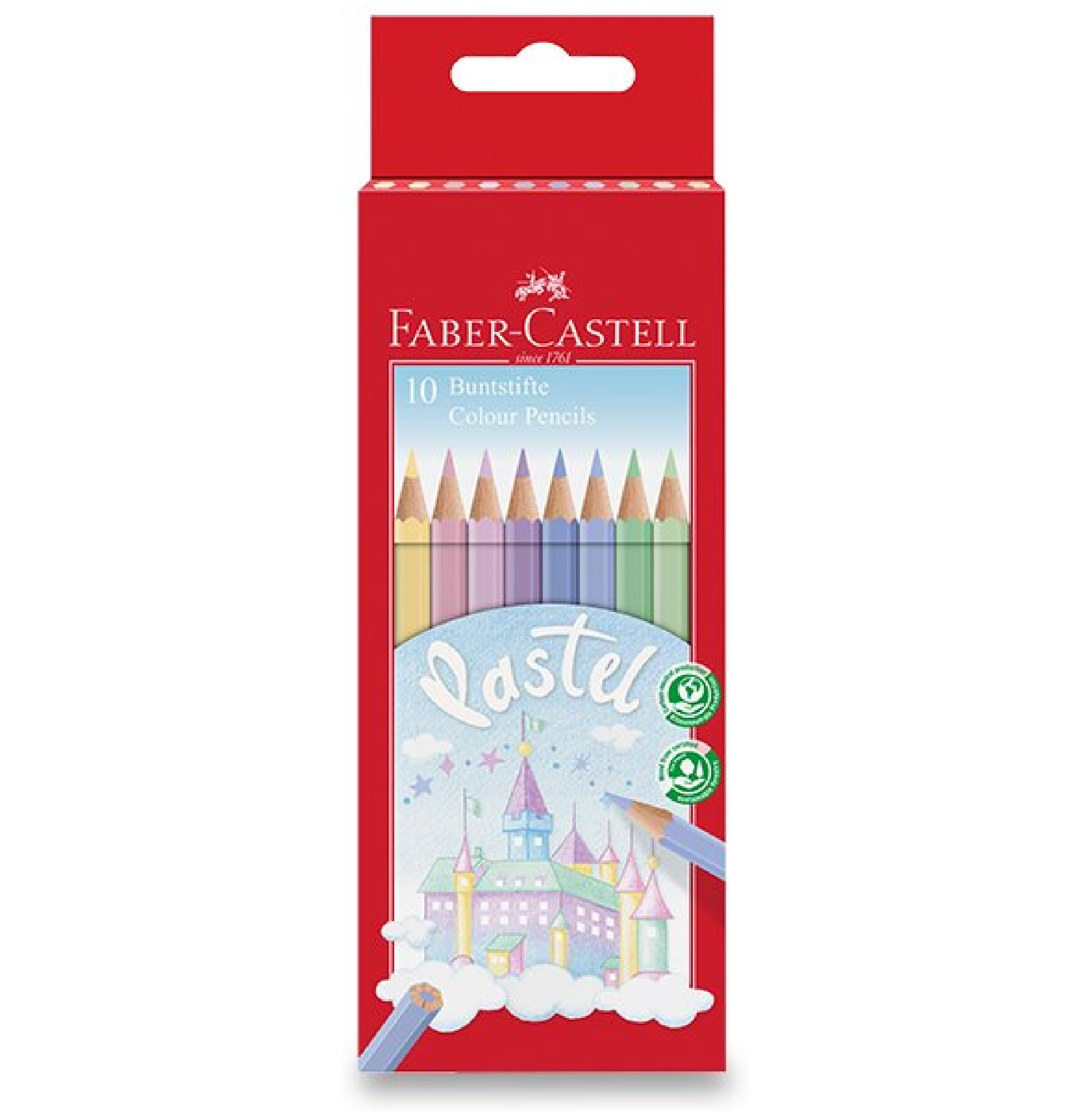 Popis:Souprava 10 kusů klasických šestihranných dřevěných pastelek Faber-Castell Pastel.