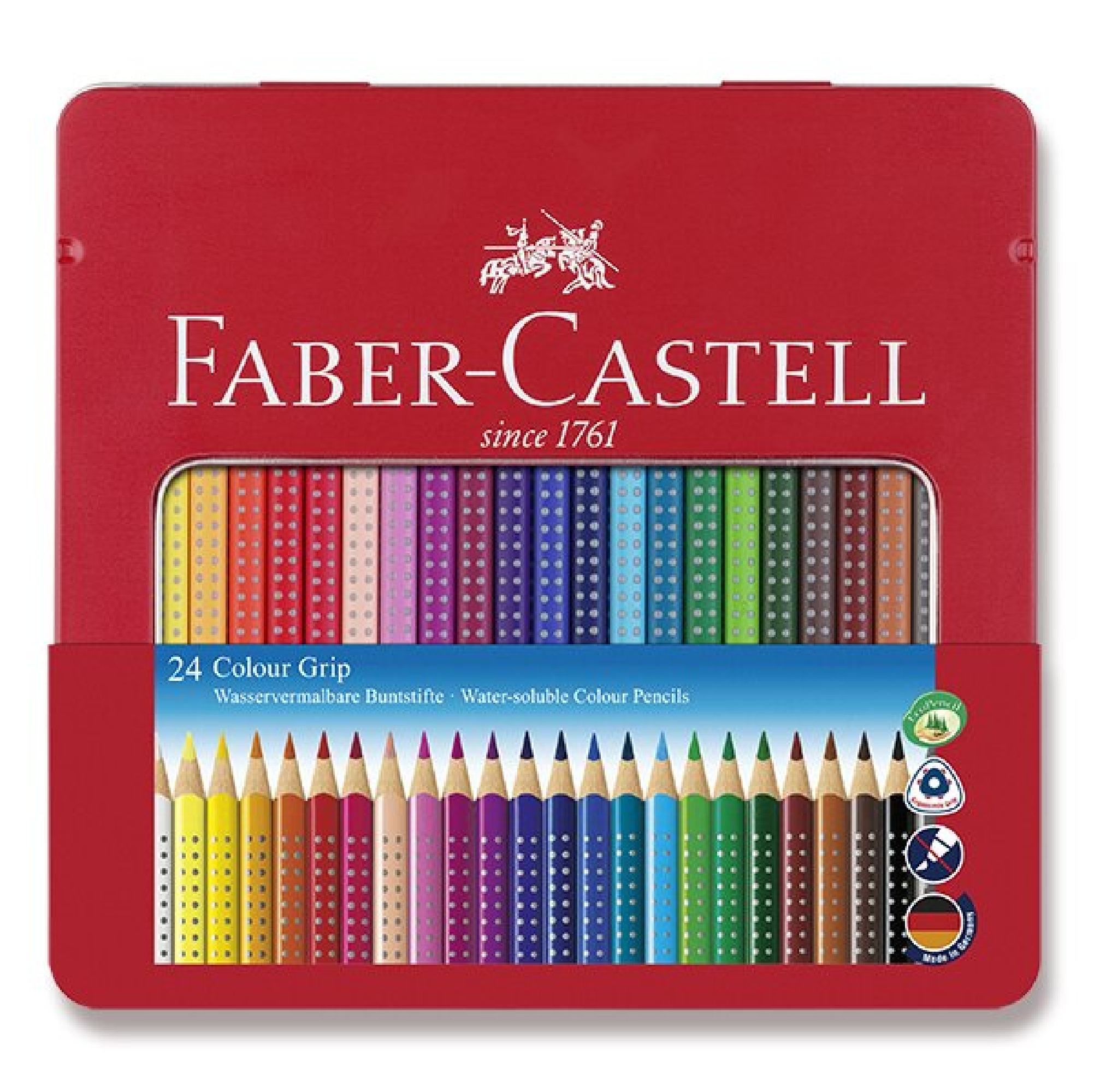 Popis:Souprava 24 kusů kvalitních trojhranných pastelek s patentovanou GRIP zónou v plechové krabičce.