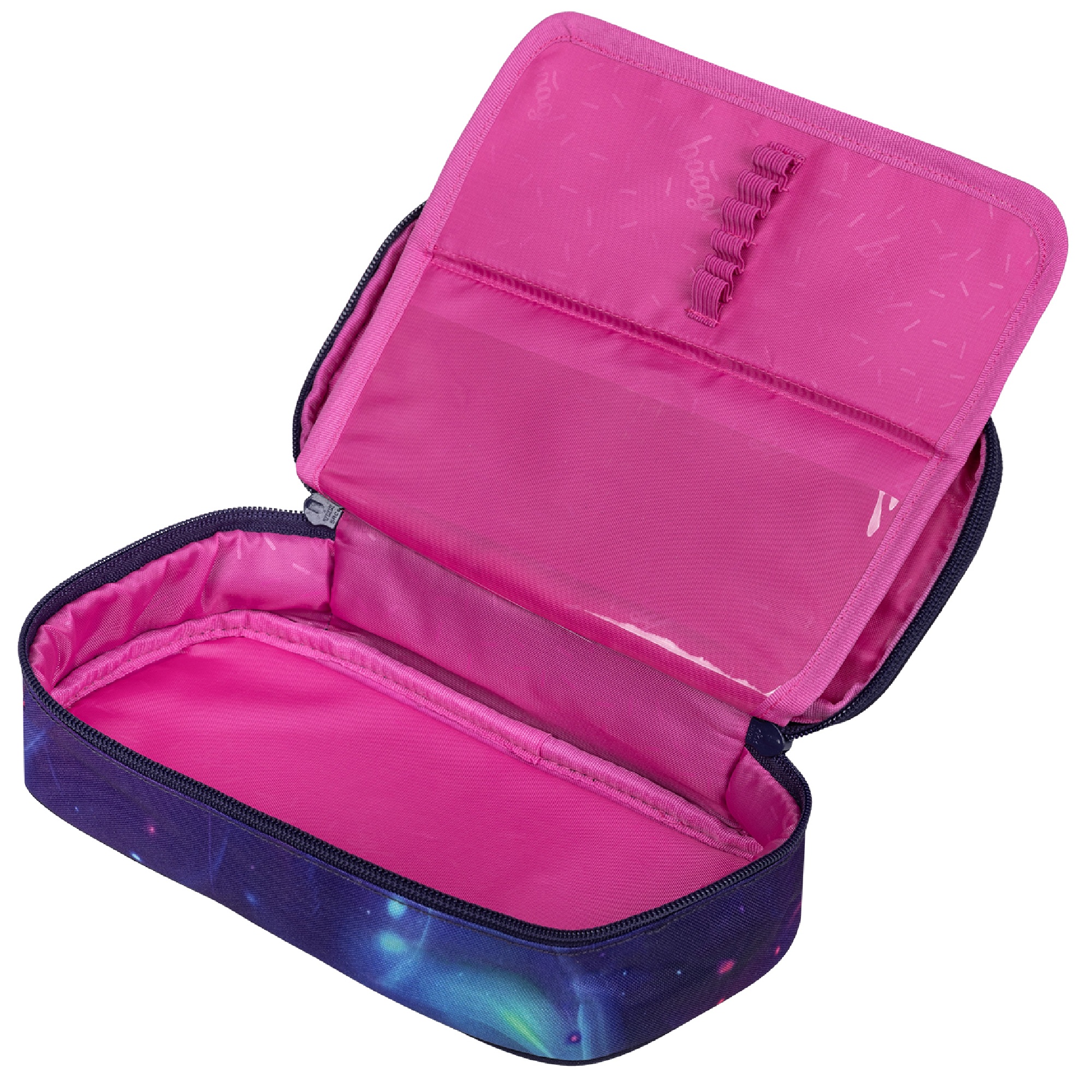 Součástí penálu je také vnitřní kapsa a okénko na rozvrh hodin.
