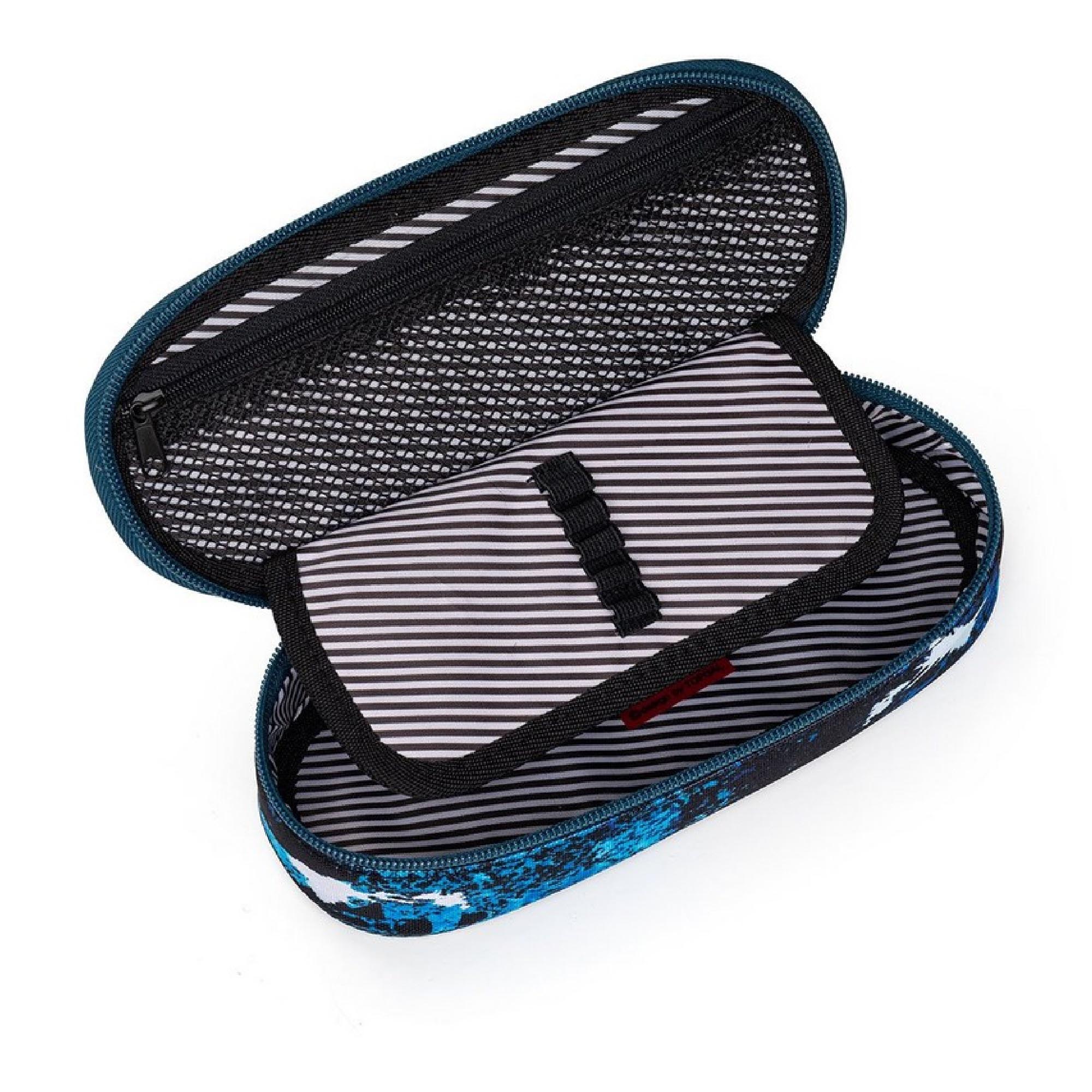 Popis:Oválný penál pro všechny potřebnosti. Uvnitř pouzdra je síťová kapsička na zip a klopa, na níž jsou umístěny gumičky pro uchycení celkem devíti tužek a propisek, které je potřeba mít přehledně uspořádané a po ruce. Volný prostor pod klopou pak umožňuje volně umístit další psací potřeby – pastelky, fixy, prostě cokoliv potřebujete.