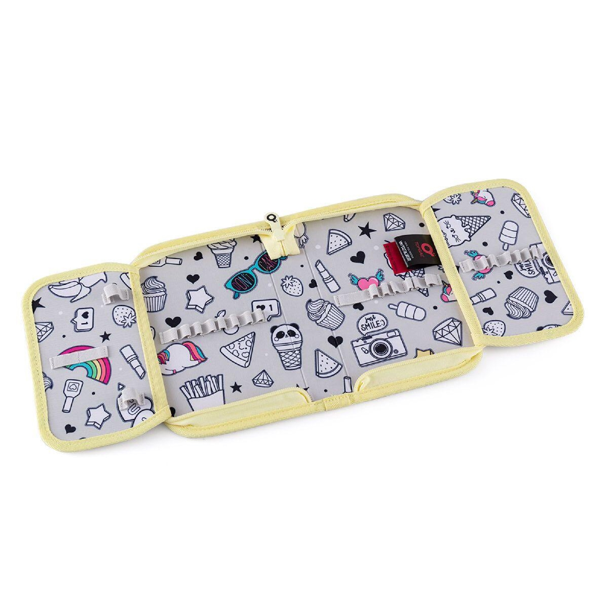 Kreslení povoleno! Vnitřní podšívka pouzdra je vyrobena z šedé látky s natištěnými obrázky. Ty si mohou děti vybarvit dle nálady a chuti. Naše malé doporučení - pro vybarvování budou lepší pastelky, fixy by se mohly rozpíjet.