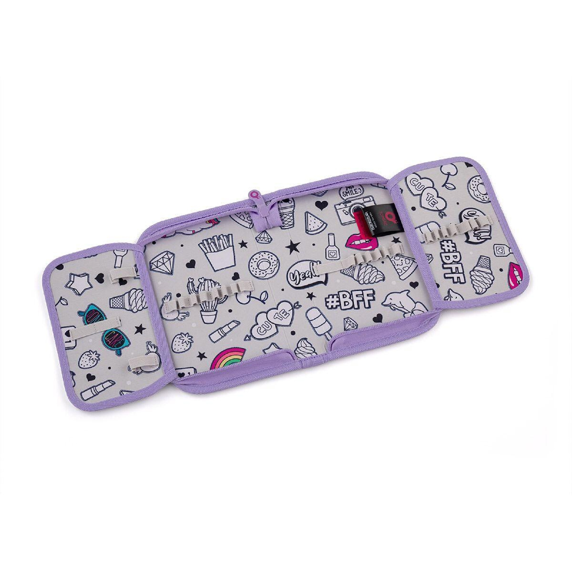 Kreslení povoleno! Vnitřní podšívka pouzdra je vyrobena z šedé látky s natištěnými obrázky. Ty si mohou děti vybarvit dle nálady a chuti. Naše malé doporučení - pro vybarvování budou lepší pastelky, fixy by se mohly rozpíjet.