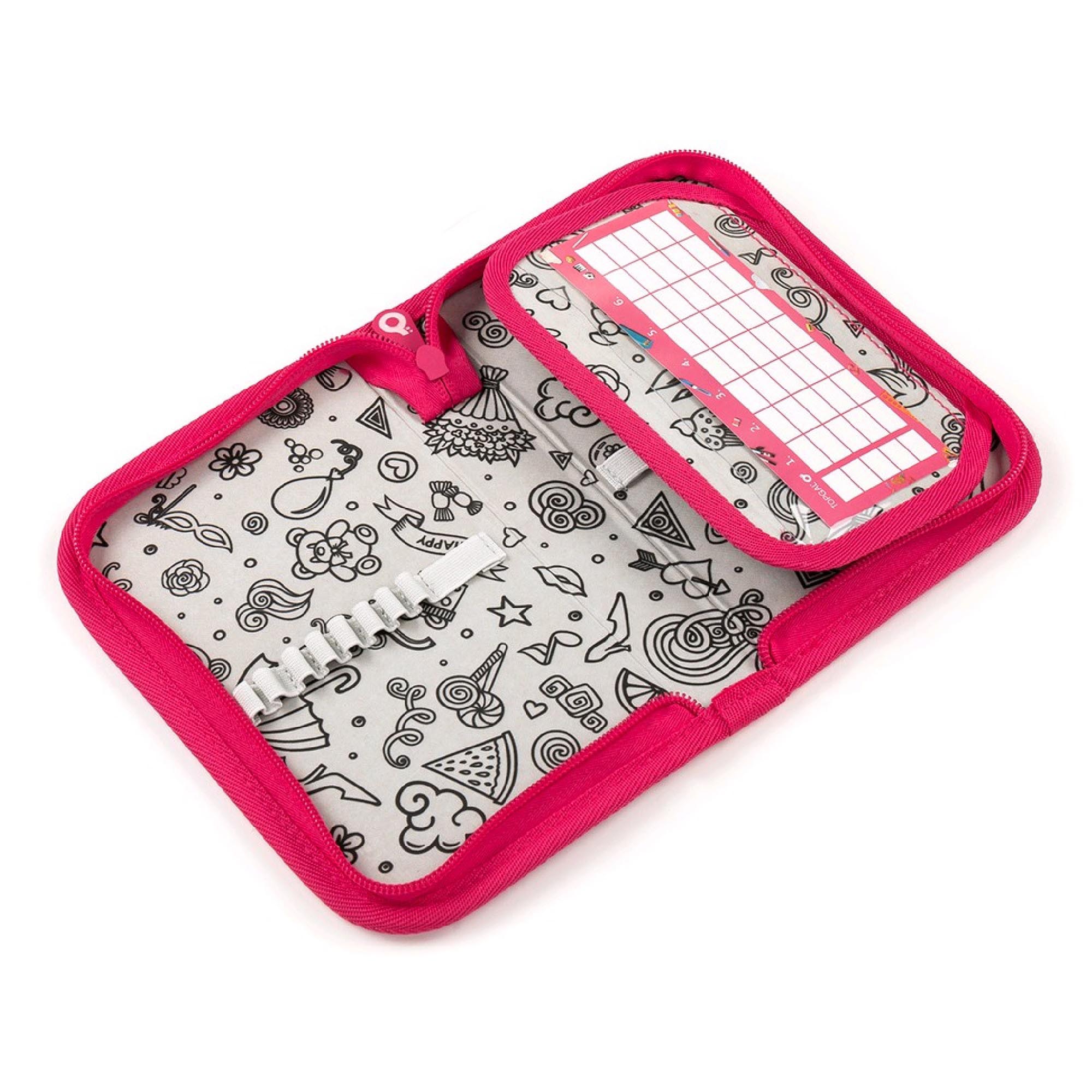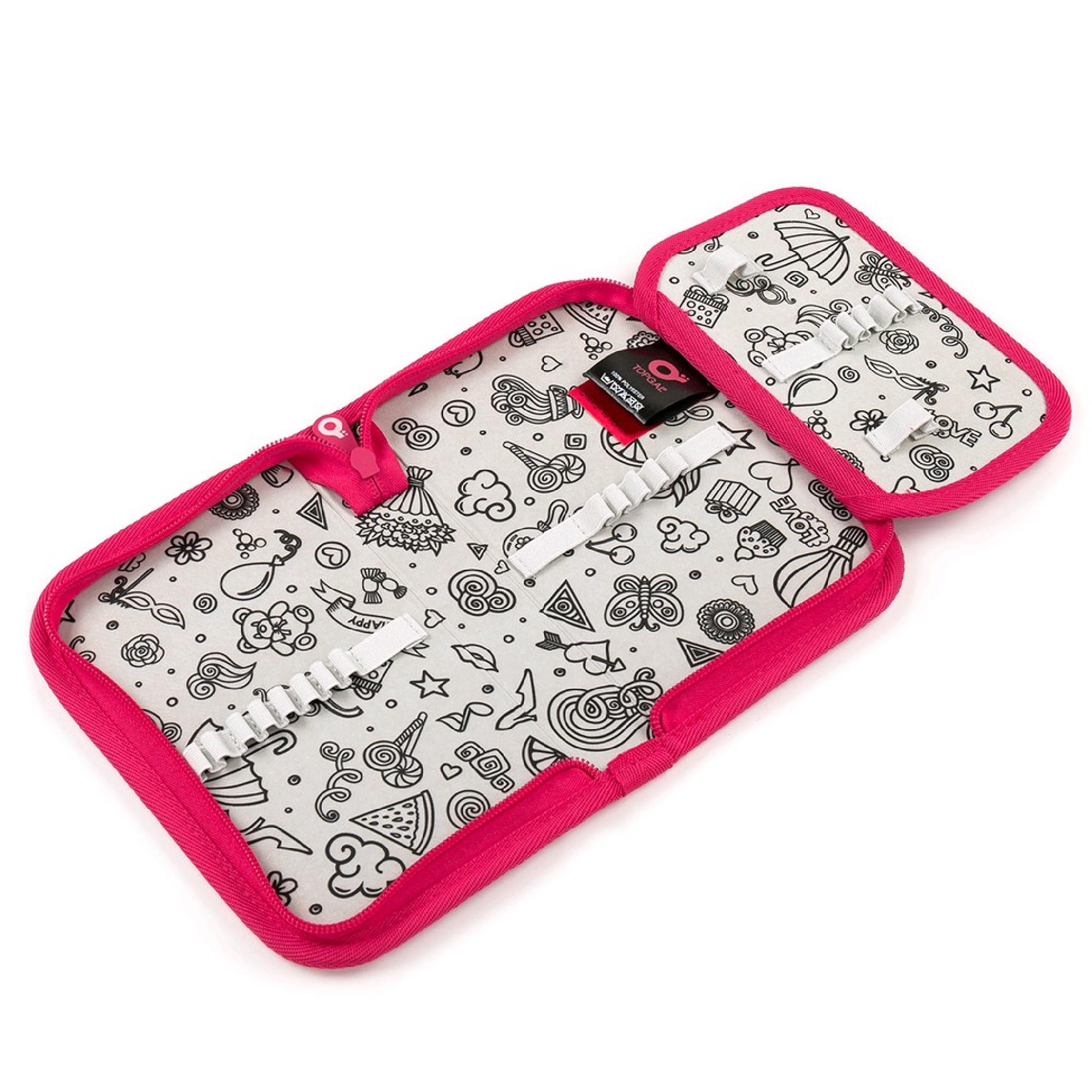 A pozor, máme novinku! Vnitřní podešívka penálu z šedé látky je potištěná obrazci, které můžete vybarvovat! K vybarvení doporučujeme použít klasické pastelky, fixy by se mohly rozpíjet.