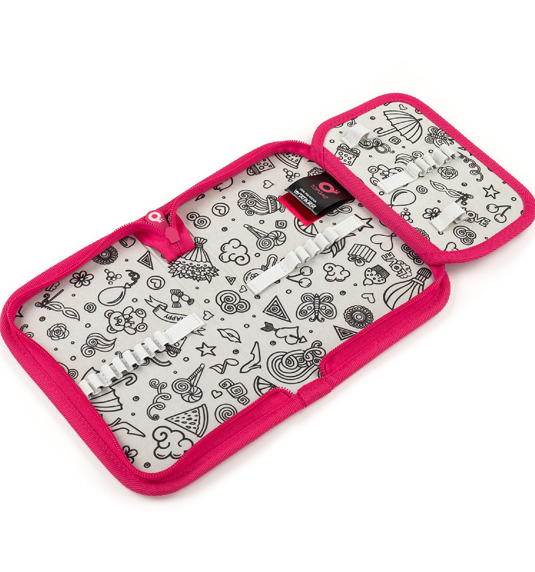 Popis:Jednopatrové školní pouzdro je vybaveno osmnácti klasickými gumovými úchyty na pastelky a fixy, čtyřmi širšími úchyty na pravítko, kružítko či nůžky a dvěma většími úchyty na gumu a ořezávátko. Pod klopnou z průhledné folie najdete rozvrh hodin, ale třeba poslouží i na taháky :-)Penál je polstrovaný, takže spolehlivě ochrání všechny psací potřeby vašich dětí. Zapínání je řešeno kvalitní zipy s velkými taháčky, které umožňují dětem snadnou manipulaci s pouzdrem.