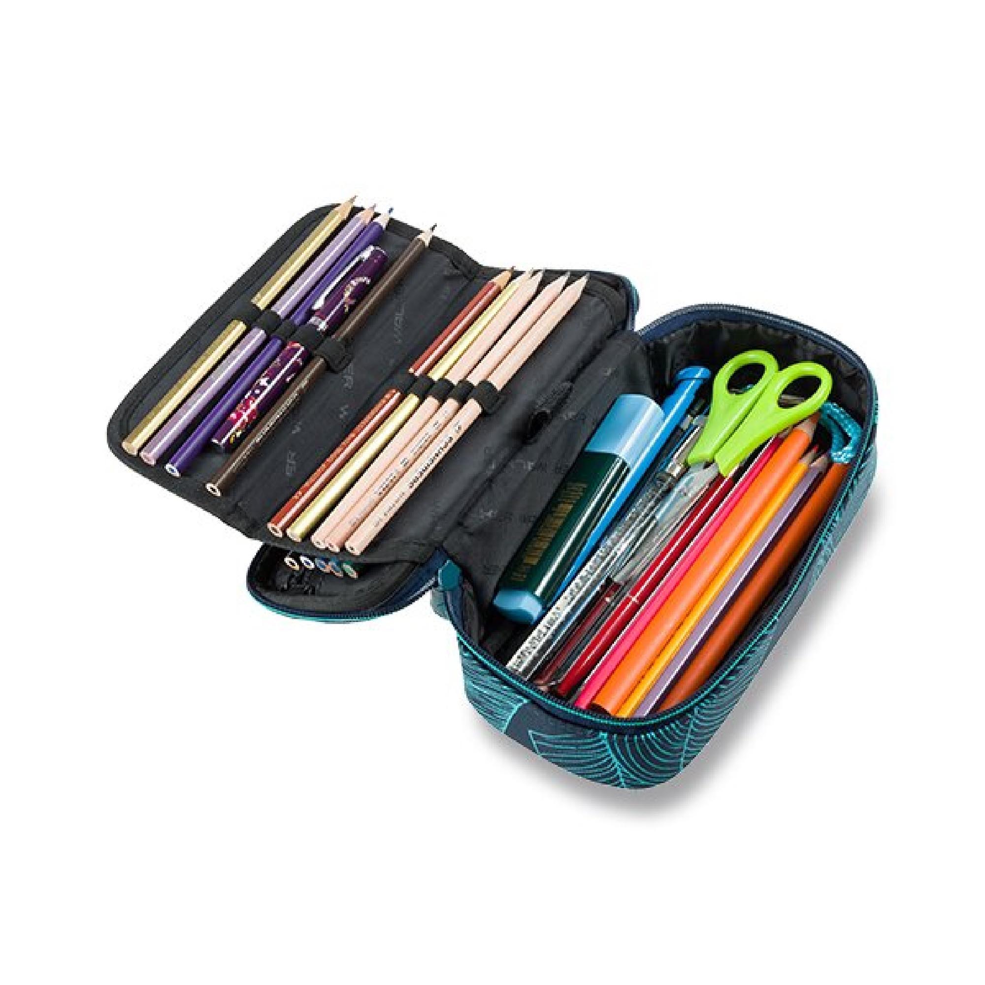 Popis:Penál Uni Camo Green z řady Walker Fame na psací potřeby s uzavíráním na zip. Horní klopa je s kapsou uzavíratelnou na zip a se 2 kapsičkami. Rozložitelná prostřední klopa je s 20 poutky na tužky, uzavírání na suchý zip.