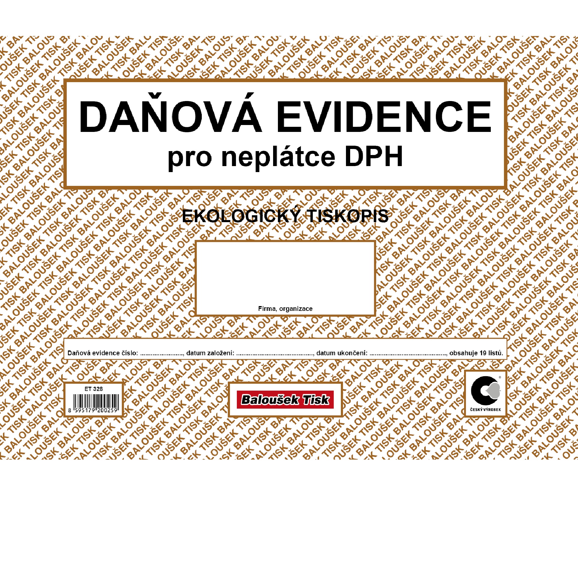Popis:Baloušek daňová evidence pro neplátce DPH ET 328