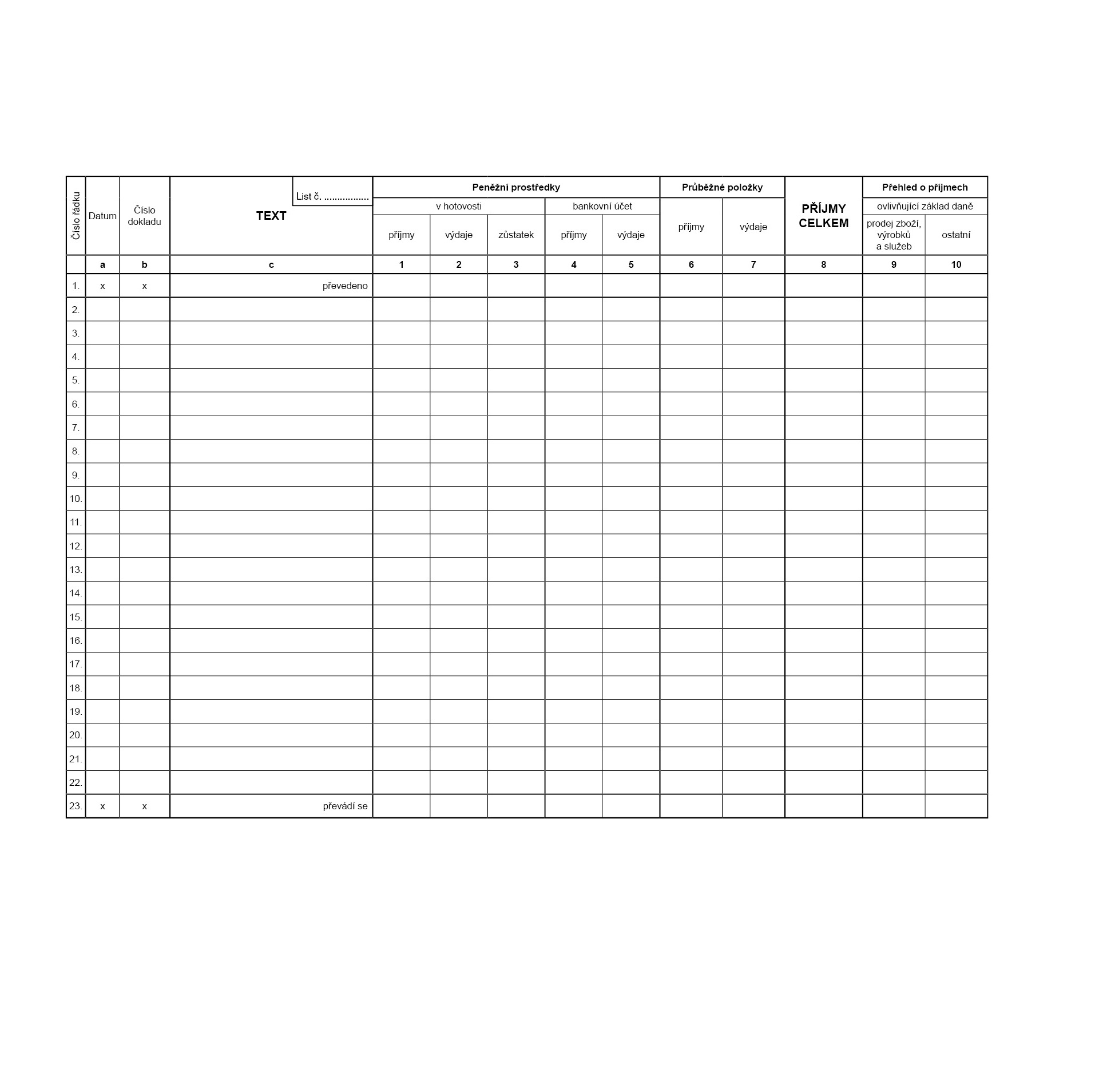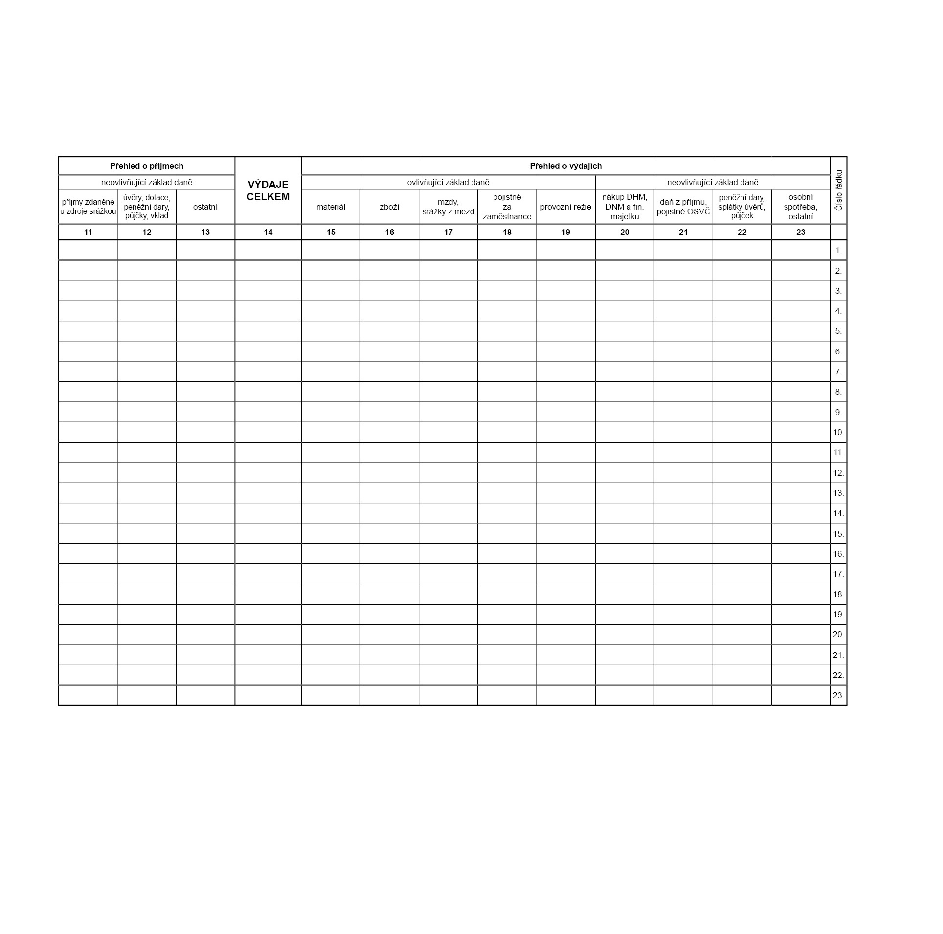 Daňová evidence /Peněžní deník pro neplátce DPH/.