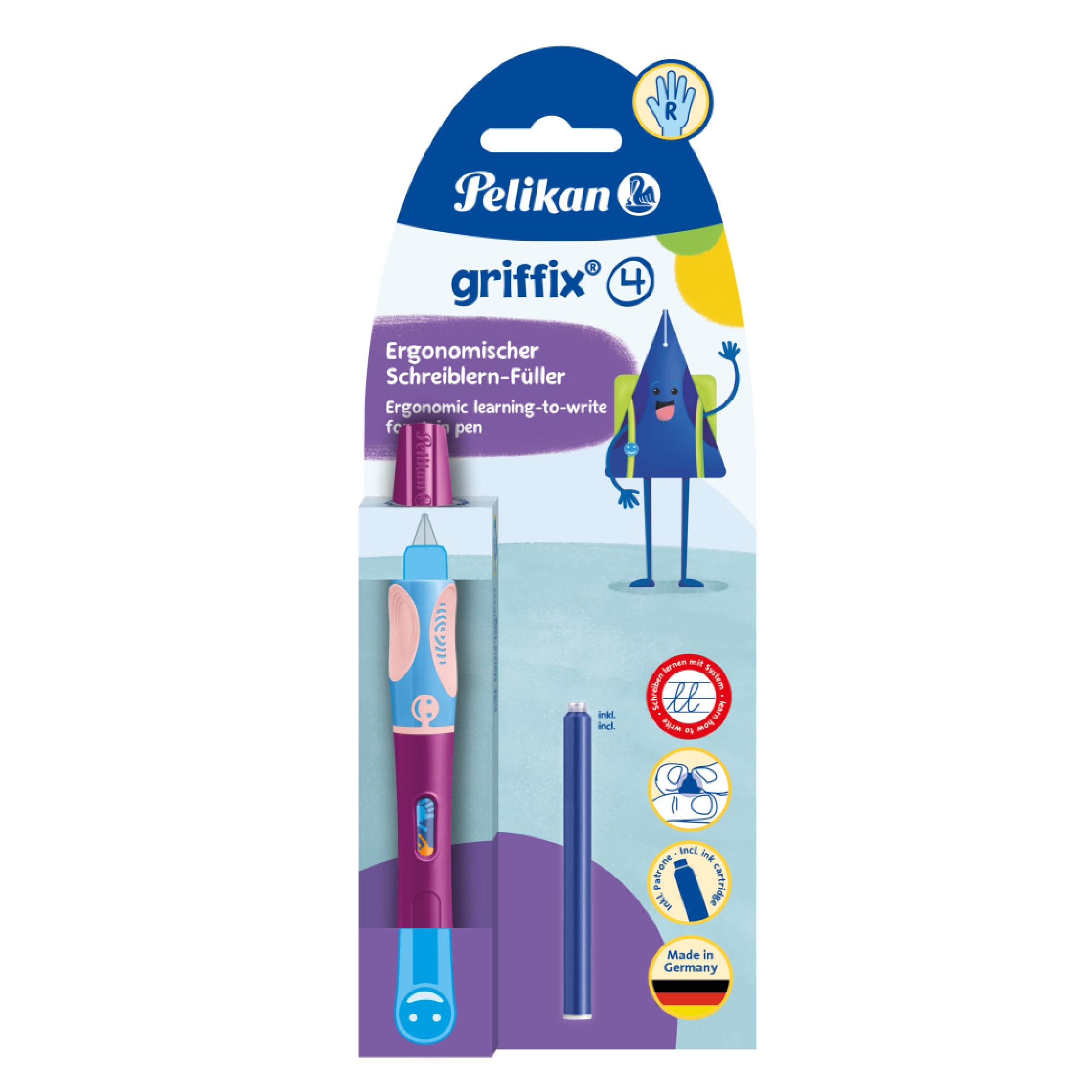 Popis:fialové. Hrot z nerezové oceli odolný proti tlaku zanechává pěkné a čisté písmo.Ergonomický design psacích potřeb griffix® podporuje správnou polohu rukou, jsou optimálně přizpůsobena individuální úrovni učení.