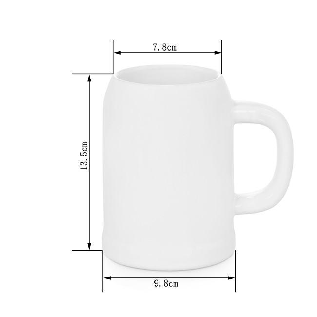 Popis:Pivní korbel určený pro potisk sublimační technologií, obsah 500 ml. Pivní korbel určený pro potisk sublimační technologií. Tento elegantní 500 ml džbánek na pivo je jedinečný svým konvergentním designem. Hladké křivky jej odlišují od tradičních pivních korbelů. Je skvělý pro každodenní použití a vhodný pro každou příležitost. Tento půllitr nabízí velkou plochu pro potisk, do které se vejdou barevné obrázky nebo loga společnosti shora dolů. Doporučuje se ruční mytí.Průměr: 98 mmVýška: 135 mmObsah: 500 mlPro optimální tepeplný přenos je dobré doobjednat manžetu SU-005-Big.Aplikační paramentry: teplota: 180oC čas: 40 vteřin