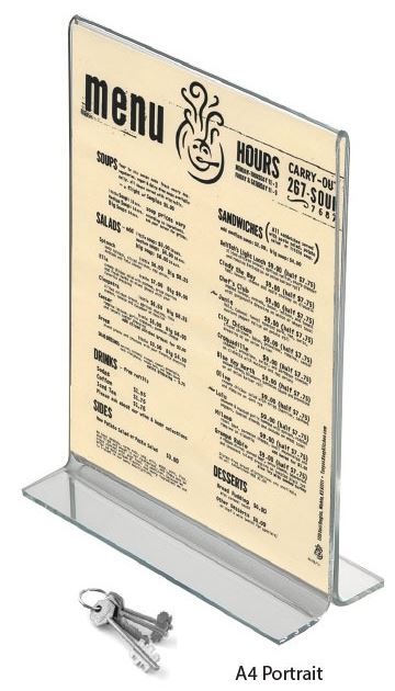 Plexi stojánek na stůl oboustranný typu T - velikost A4 na výšku