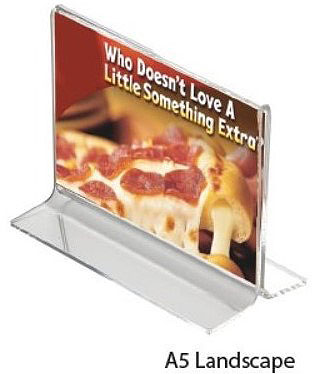 Plexi stojánek na stůl oboustranný typu T - velikost A5 na šířku