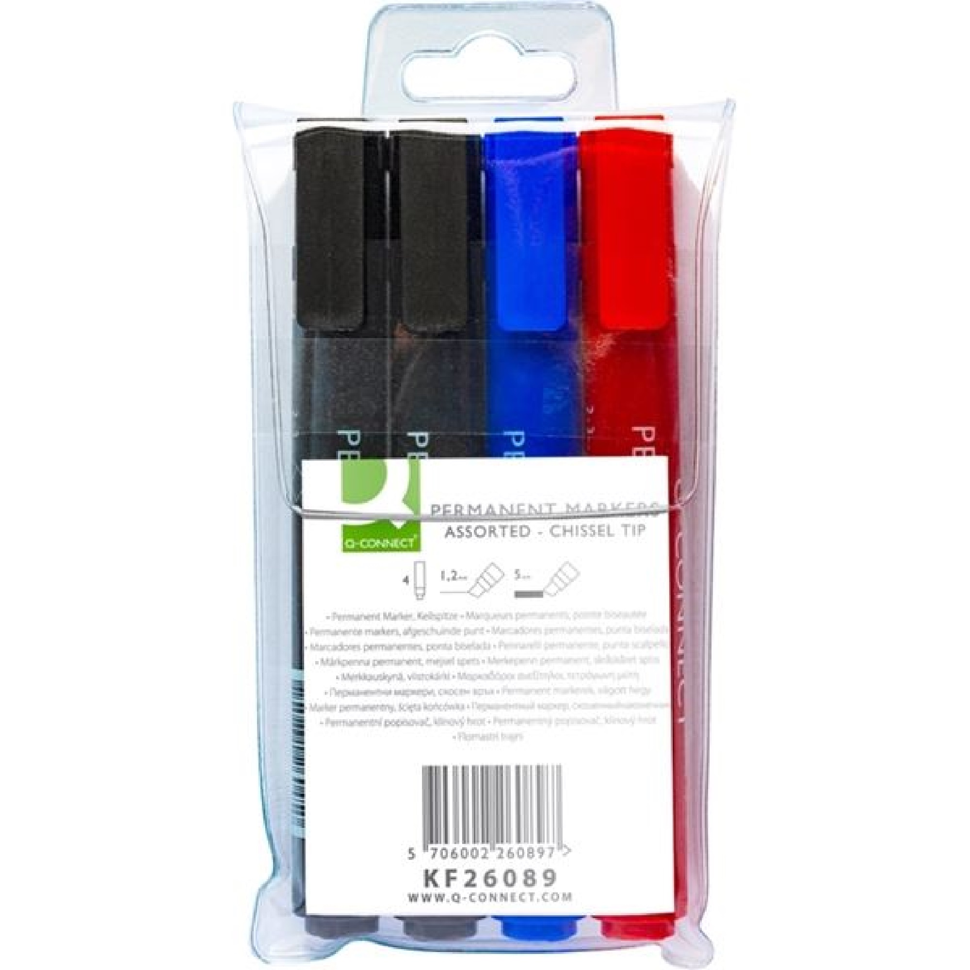 Popisovač permanentní Q-Connect - zkosený hrot, sada 4 ks