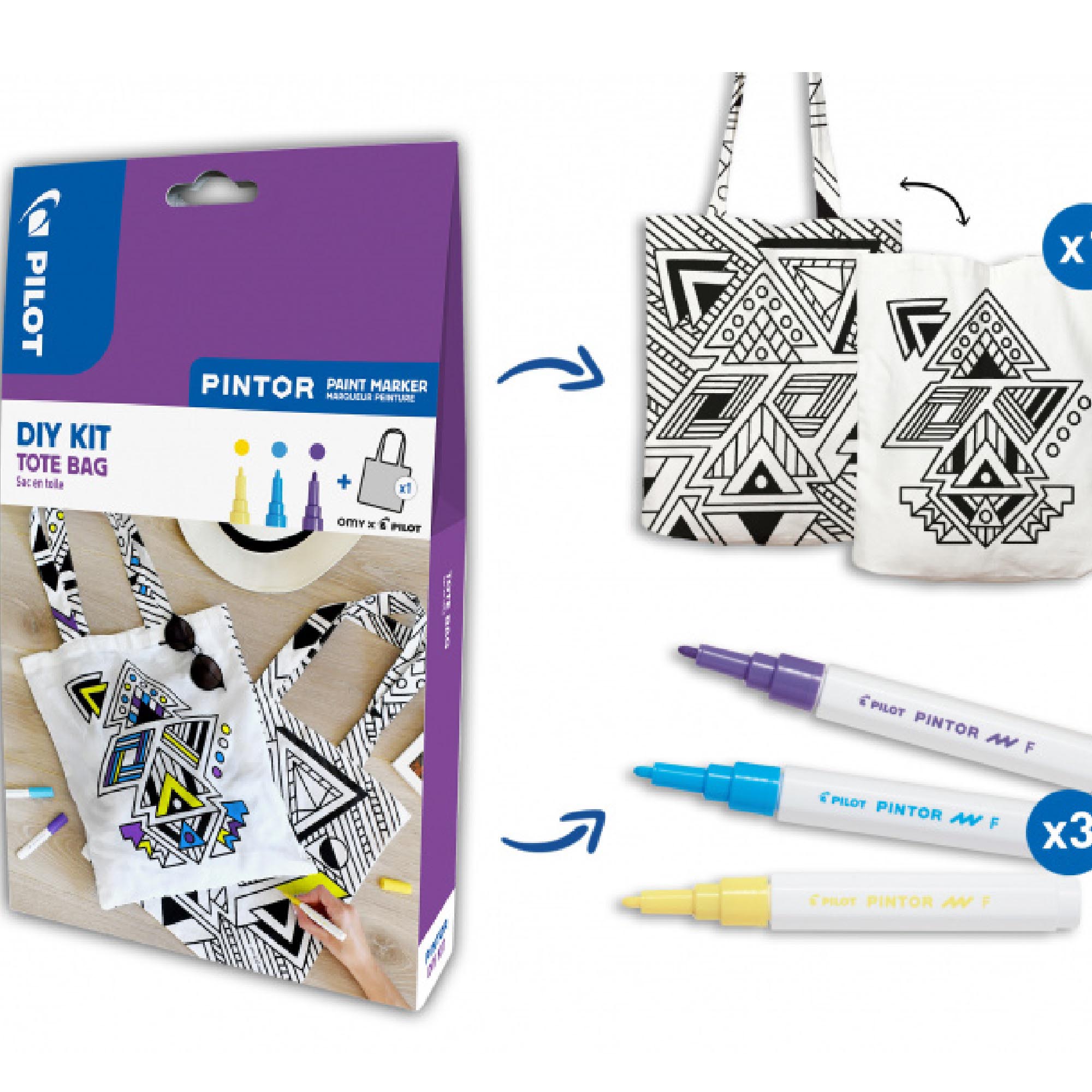 Sada v dárkovém sáčku obsahuje: 1 x Pintor (hrot Fine): černá, fialová, světle modrá + 1 x plátěná taška.