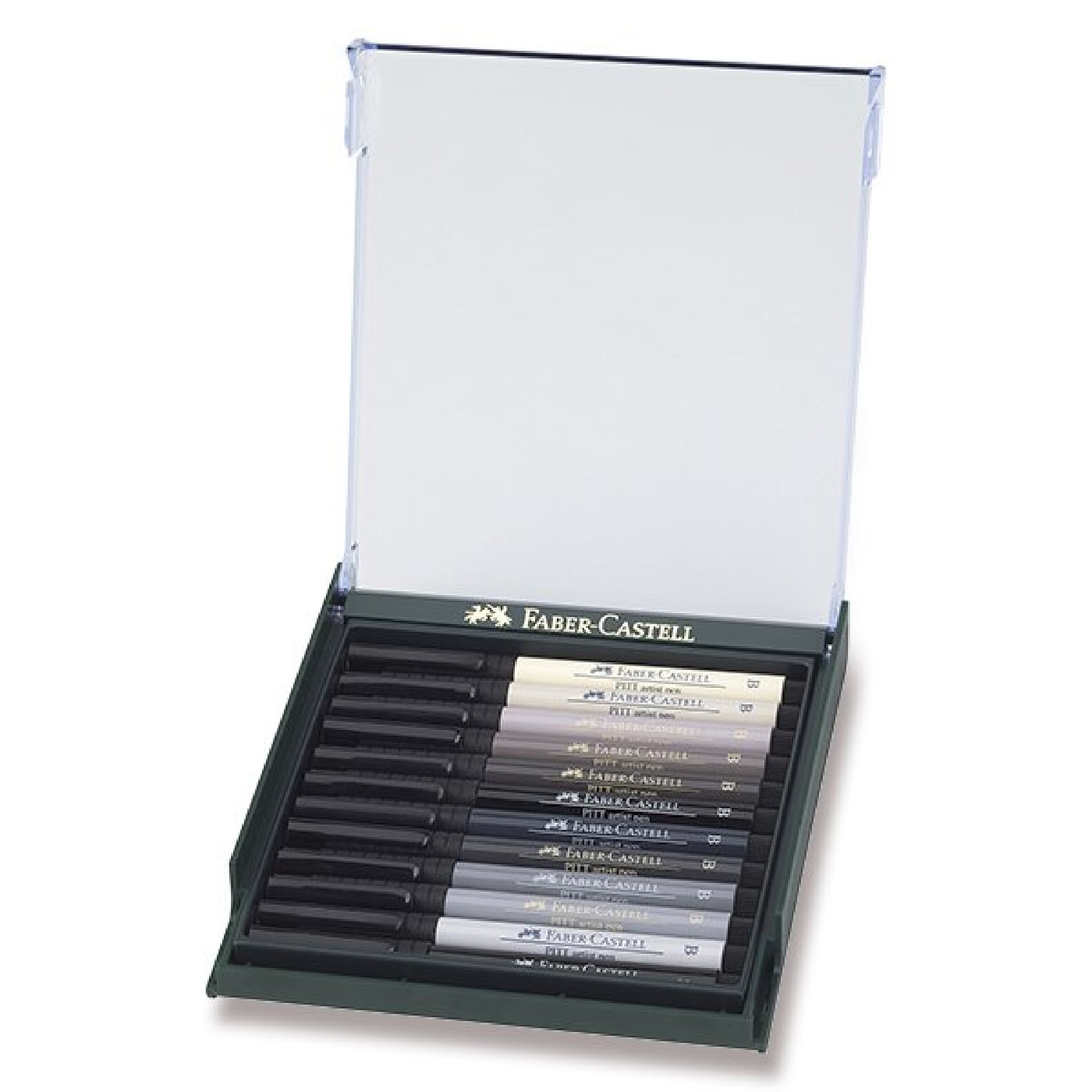 Popisovače Faber - Castell Pitt Artist Pen Brush Odstíny šedi 12 ks