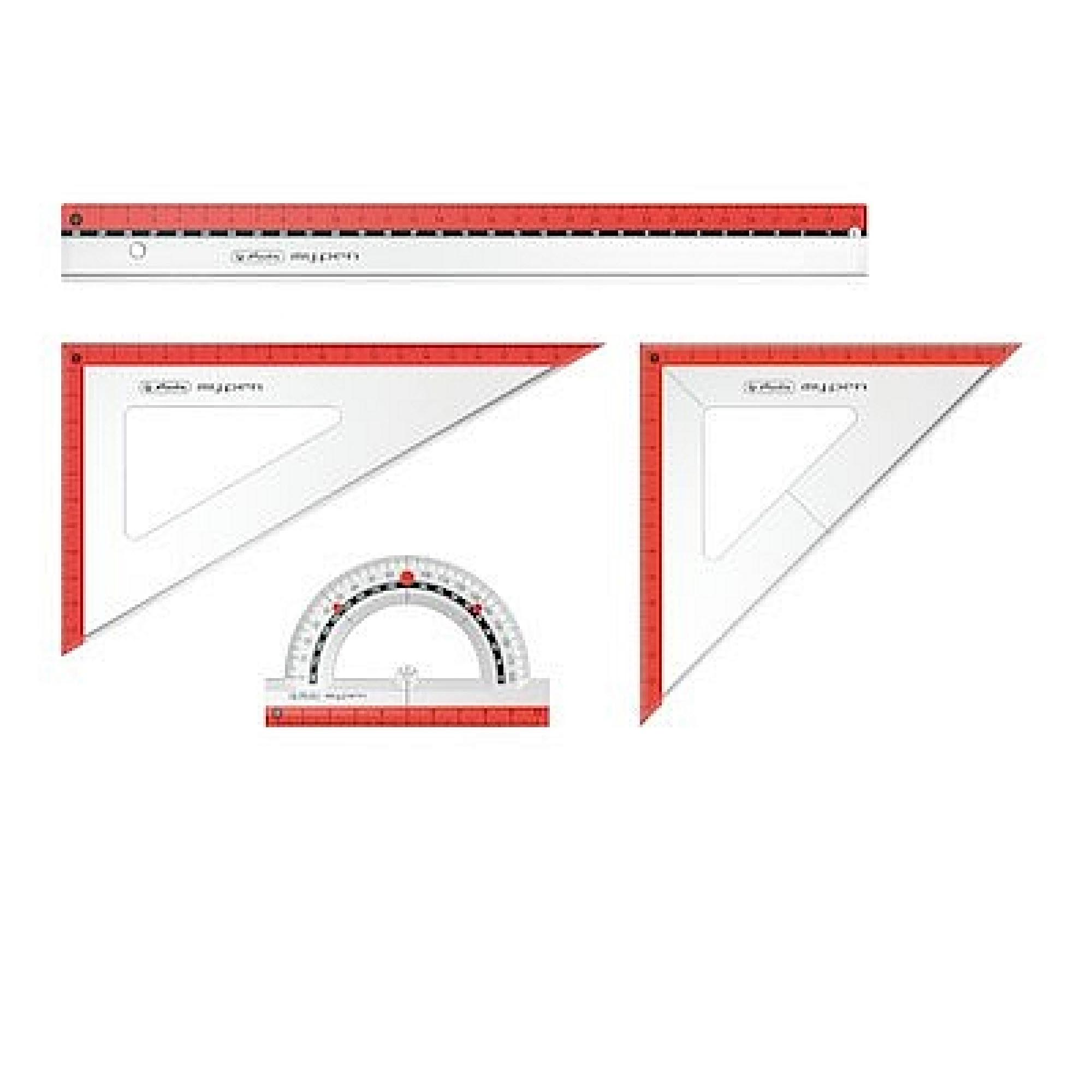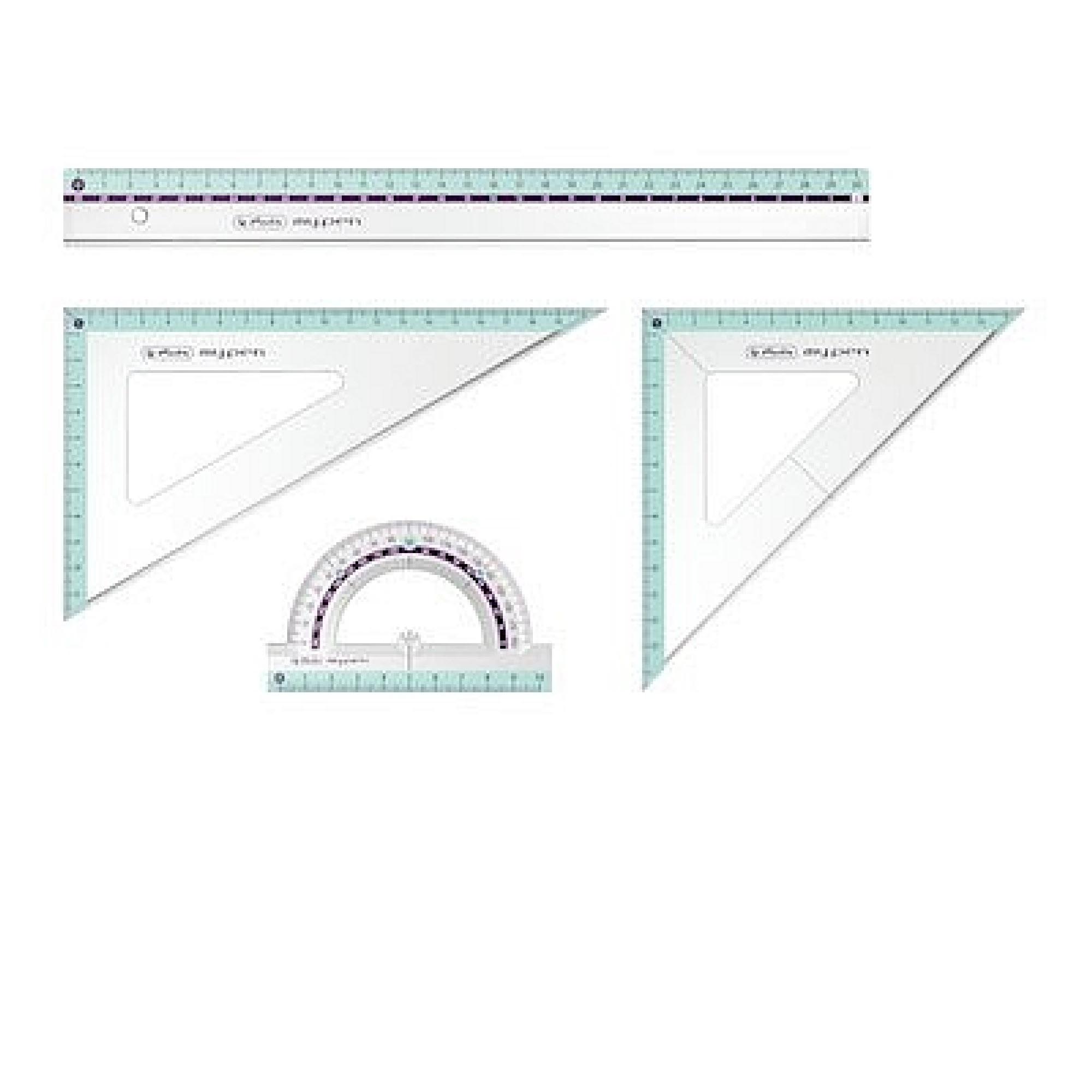 Popis:my.pen 4 díly - pravítko 30 cm, 2x trojůhelník, úhloměr, materiál plast - z nelámavého materiálu, mix barev
