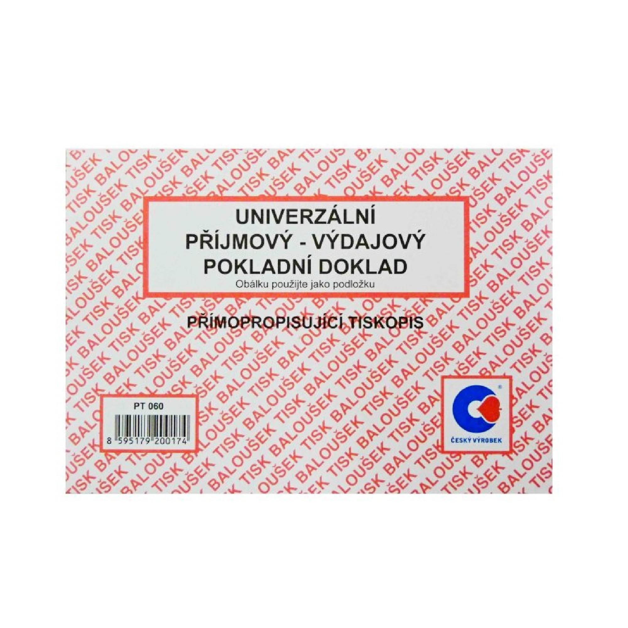 Popis:Univerzální přijmový - výdajový doklad propisujicí, formát A6, PT060, 50 listů