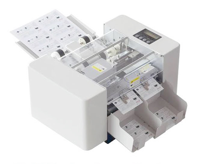 Popis:Automatická profesionální řezačka vizitek, která zasadním způsobem šetří čas obsluze. Malý, kompaktní a snadno ovladatelný stroj Digicard A4 je speciálně koncipován k přesnému řezání vizitek z formátu A4. Obsluha je velmi jednoduchá a lze tedy ihned začít stroj využívat. Prostřednictvím tlačítka lze zvolit 5 formátů vizitek. Zbytek zařídí elektronika. Kapacity řezačky je až 80 vizitek za minutu. Každá vizitka je ořezávána ze všech čtyř stran, čímž je zaručen přesný formát každé vizitky list za listem. Hotové vizitky jsou strojem odkládány ve sloupcích do zásobníků, odkud je lze pohodlně vyjmout. Díky systému Microadjust můžete nastavit i odchylku od +/-2mm po 0,1mm nebo jednoduše natiskněte ořezovou značku a přesnost nechte na stroji. Tento inovovaný model řeže bez problému i dokument o síle 250g/m2 s 80mic. laminací! Řezačka je vhodná k uplatnění v copy shopech, repro střediscích a díky plynulému nastavení rychlosti lze zpracovávat i choulostivější materiály. Vložte potištěný list, stiskněte tlačítko a vyjměte hotové vizitky!- Přesné plnoautomatické řezání- Každá jednotlivá vizitka má na všech stranách perfektní řez.- Při dělení formátu A4 na 10 vizitek je volitelných 5 možností velikosti vizitek- Ještě nikdy nebylo tak snadné profesionálně řezat vizitky.- Díky systému samobroušení vydrží nově nože mnohem déle ostré!- Záruka na nože kolem 1.000.000 řezů.Technická data- Formát A4- Tloušťka papíru 0,18-0,3mm (180-300g/m2)- Formáty vizitek 90x45; 90x50; 90x54; 90x90; 90x95; 90x127 mm- Kapacita zásobníku papíru A4 do 80 listů- Kapacita zásobníku hotových vizitek až 800 ks- Rychlost až 8 listů A4 80 vizitek! za min.- Rozměry 40x25x61 cm- Váha cca 20kg