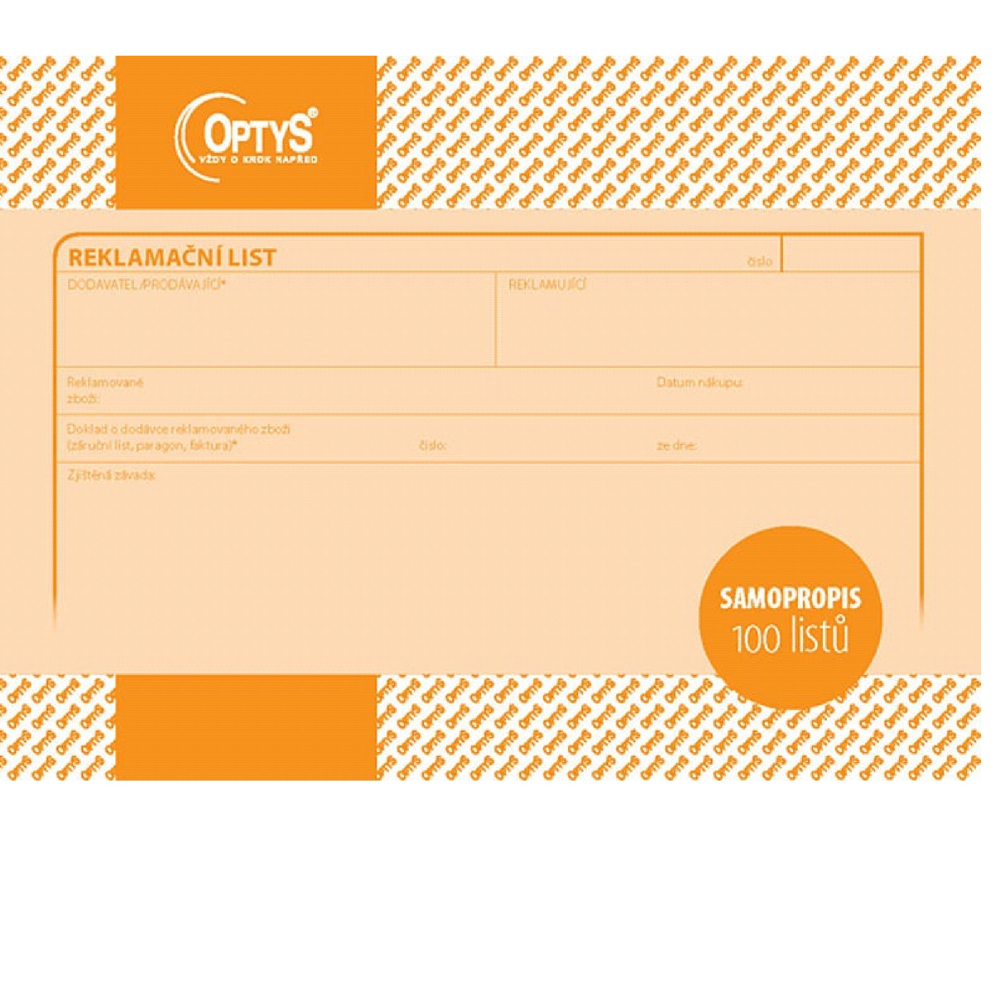 Reklamační list A5 100ls NCR Optys