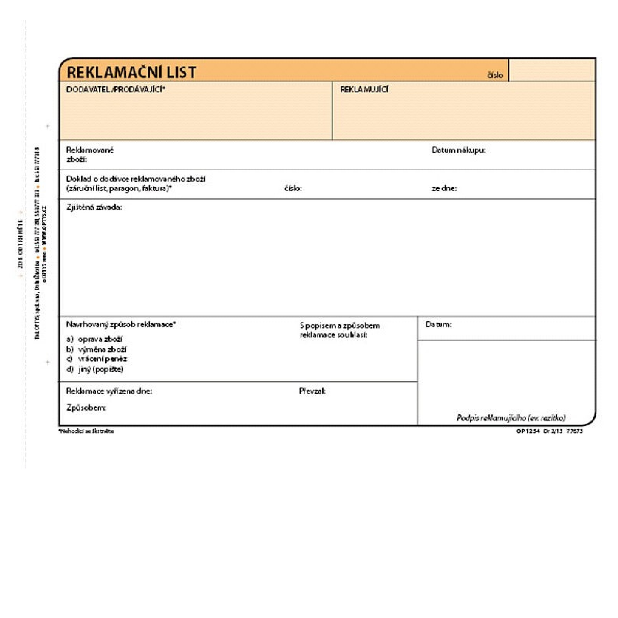 • náhled Reklamační list A5 100ls NCR Optys