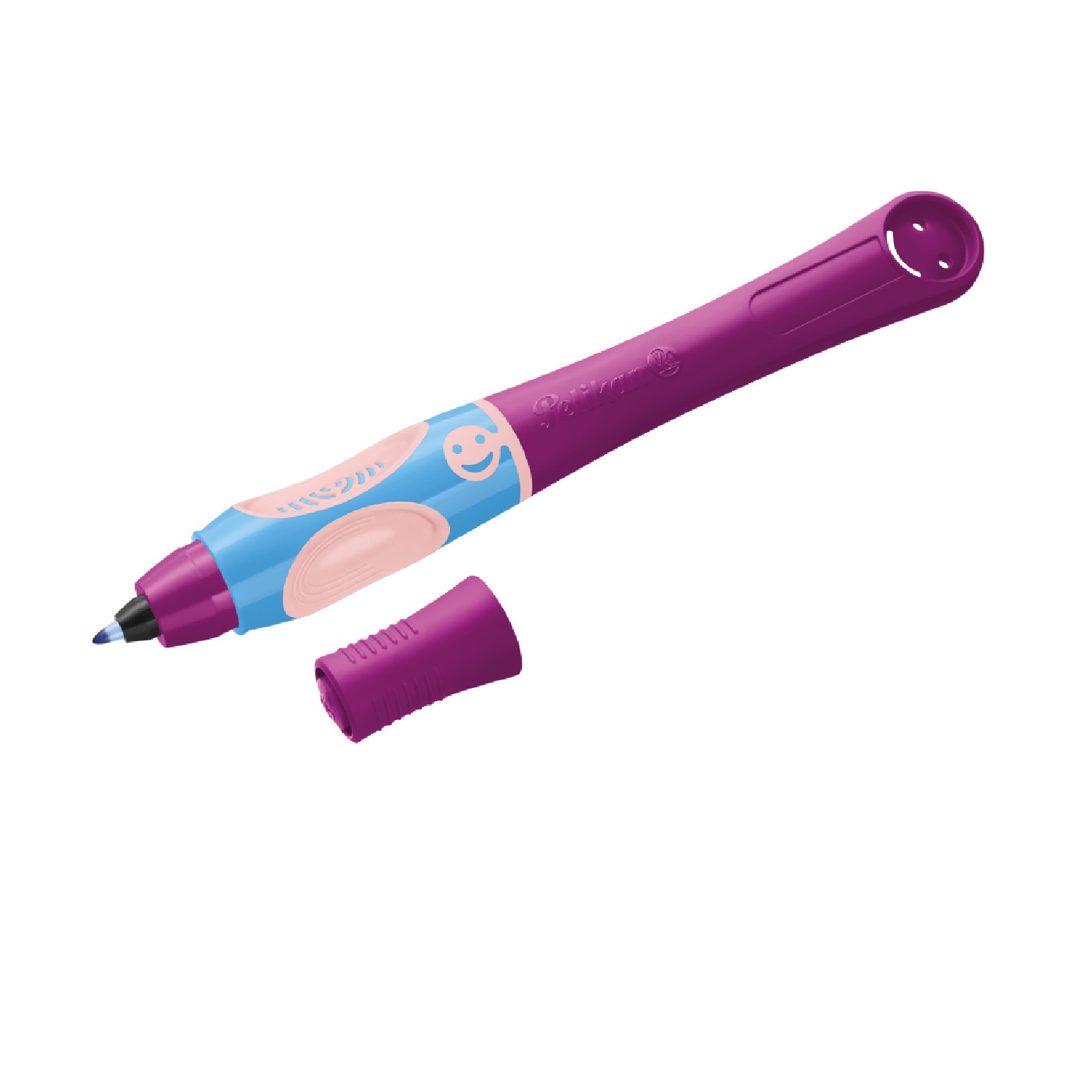 Popis:fialový, speciálně navržený úchop pro ideální držení pera, pro praváky, ocelový hrot, jmenovka, 1 ks pera + 2 náplně, vymazatelný inkoust