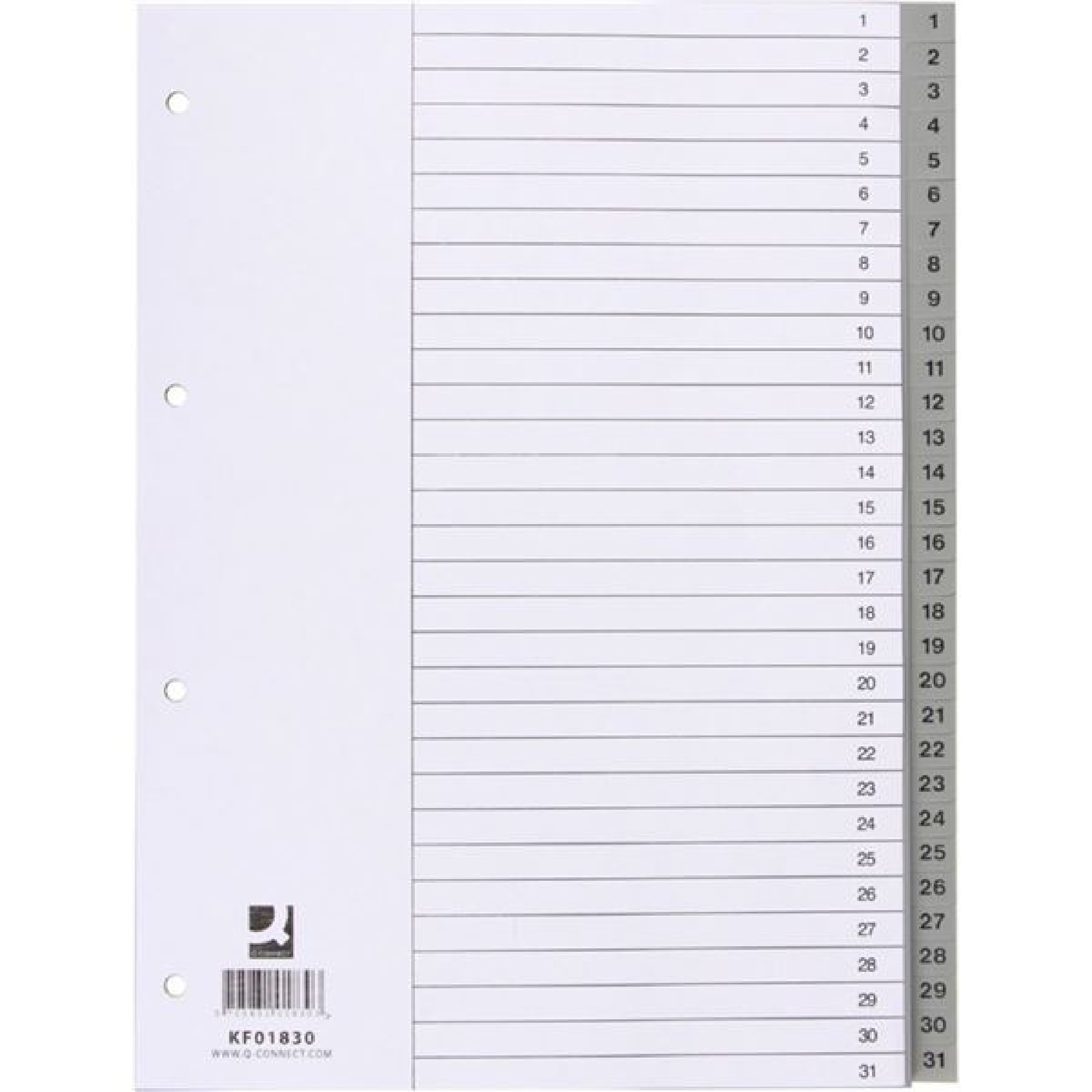 Rozlišovače plastové A4 Q-connect bílošedé sada 1-31