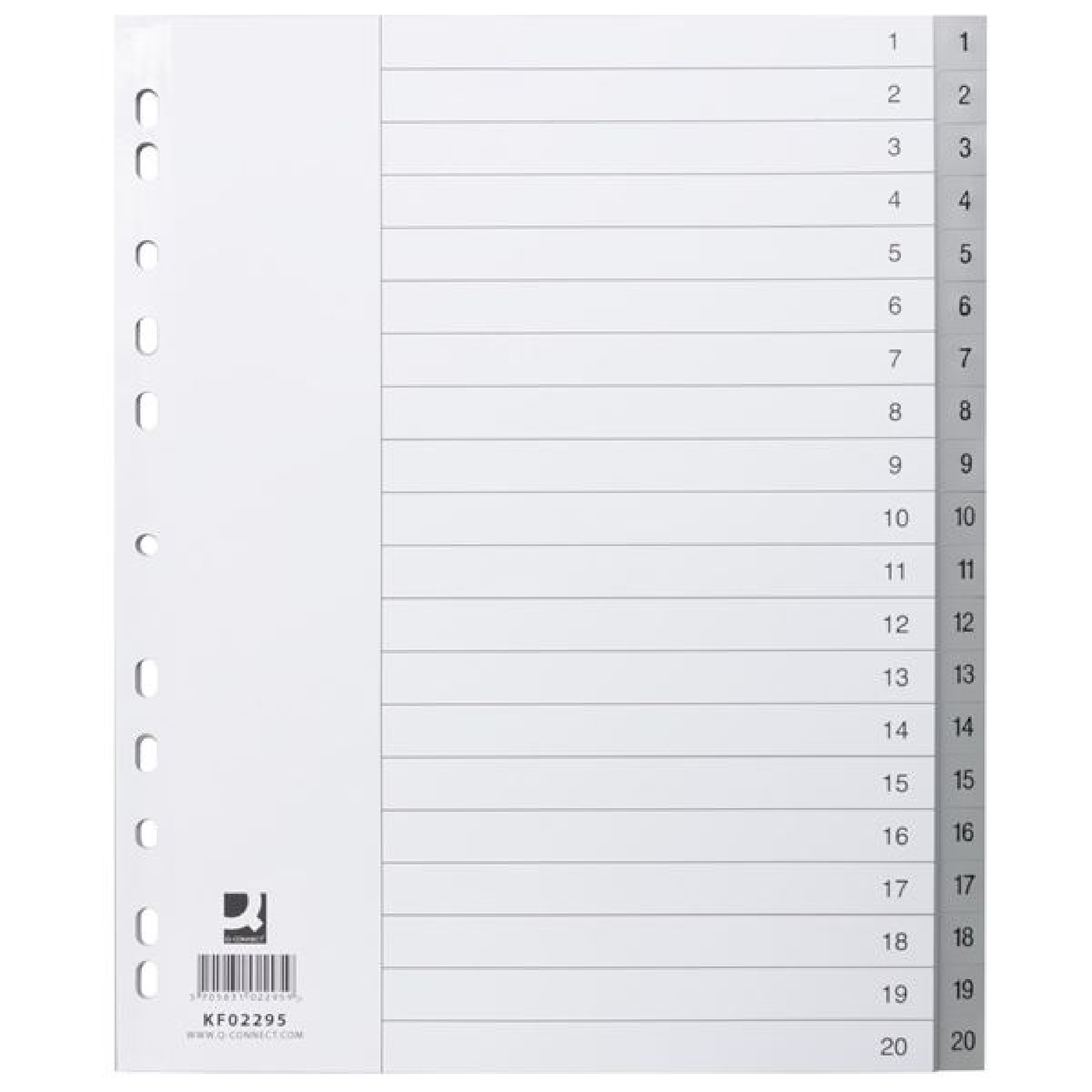 Rozlišovače plastové A4+ Q-Connect šedé sada 1-20 /E