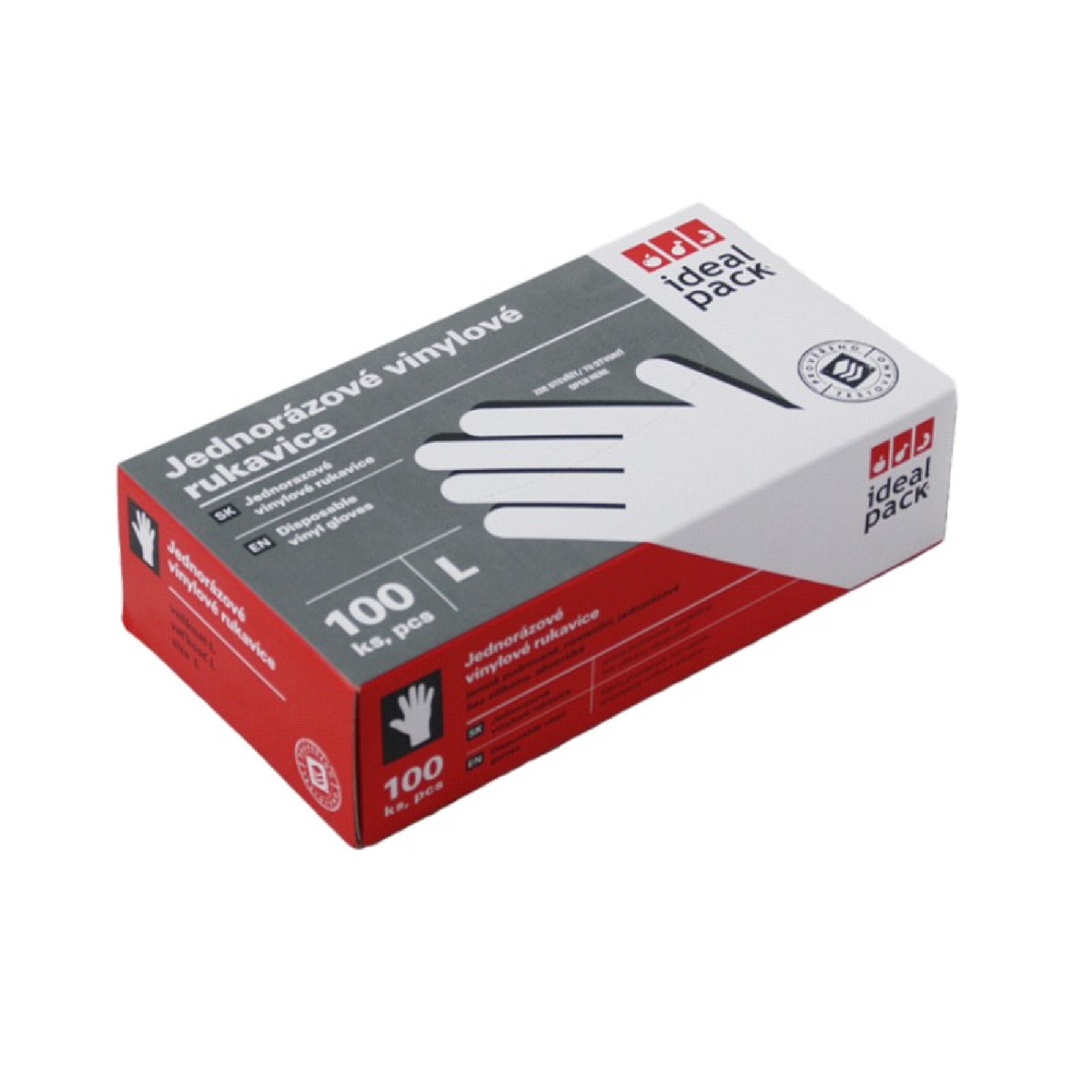 Jednorázové vinylové rukavice, jemně pudrované, nesterilní, obouruké.