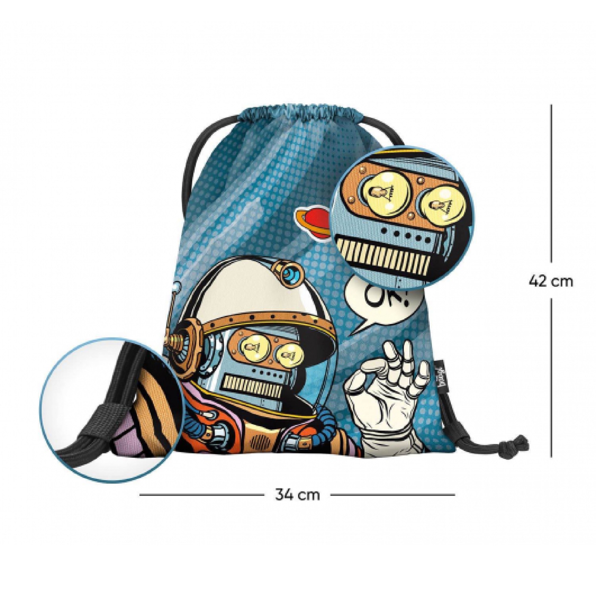 ParametryKód produktu: A-7252Motiv: SpacemanŠířka: 34Výška: 42Hloubka: 2Materiál: 100% PolyesterVhodné pro: pro klukyVáha: 0.1 kgObjem: 14 l