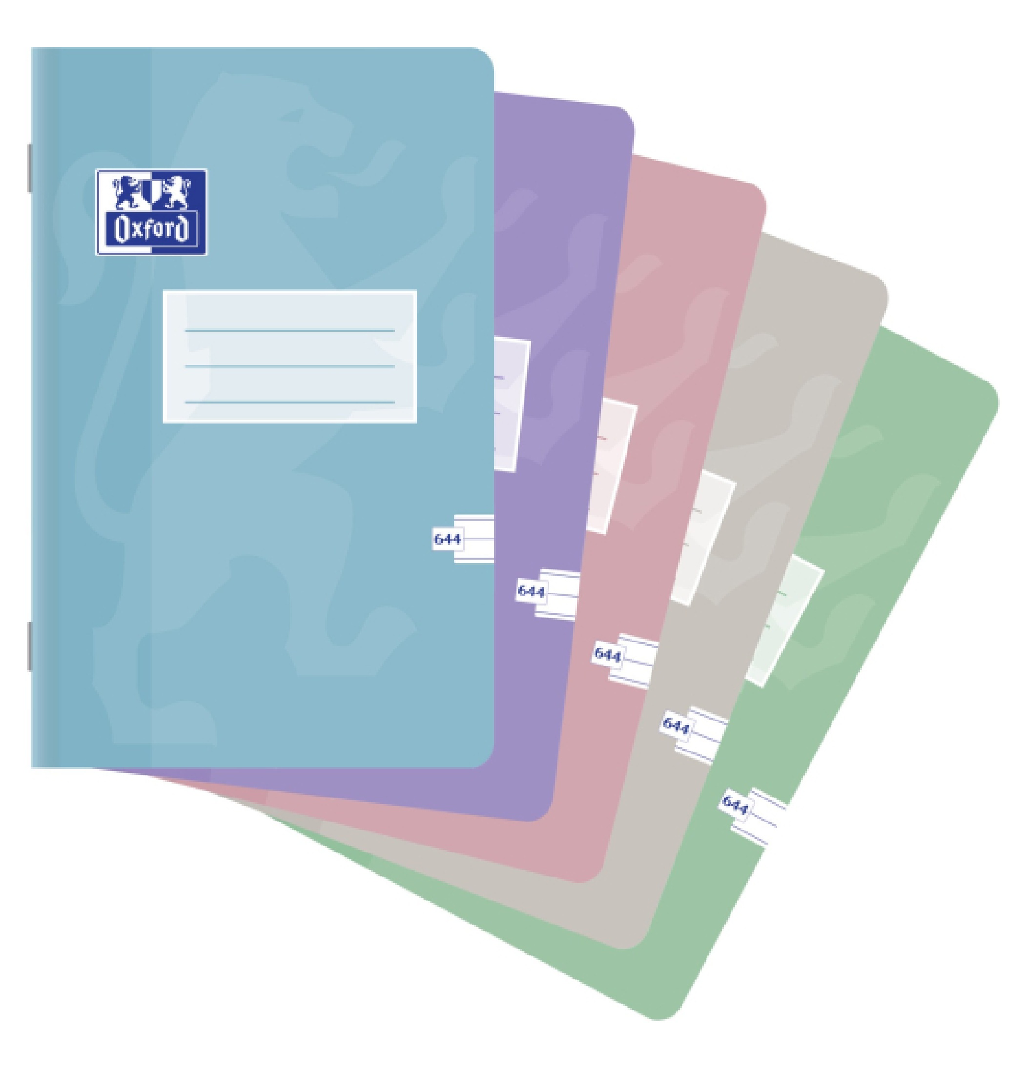V šité vazbě. Měkké, vysoce odolné laminované desky s logem značky Oxford. Mix pastelových barev,