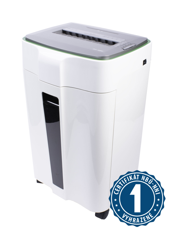 Popis:Elegantní skartovací stroj s příčným řezem. Skartovací stroj AT-22C je ideální volbou pro střední kanceláře, které vyžadují efektivní a bezpečné zpracování dokumentů. Díky příčnému řezu o velikosti 4 x 20 mm a kapacitě až 16 listů papíru A4 (70 g/m2) najednou poskytuje vysoký výkon při zachování kompaktních rozměrů. Stroj je vybaven samostatným vstupem pro skartaci CD/DVD a kreditních karet, což zajišťuje separaci odpadu a snadnou recyklaci. Odpadní nádoba o objemu 30 litrů s průhledným okénkem umožňuje snadnou kontrolu naplnění. Díky pojezdovým kolečkům a nízké váze 14 kg je manipulace se strojem jednoduchá a pohodlná a její příjemné rozměry 600 x 372 x 322 mm umožňují umístění na mnoho místech. Plynulý a bezpečný provoz skartovače AT-22C je vybaven automatickým systémem start/stop a funkcí zpětného chodu pro případ zaseknutí papíru. Dvojitá tepelná pojistka chrání motor před přehřátím, zatímco elektronické zabezpečení dveří a signalizace přeplněného koše zajišťují bezpečný provoz. Stroj je navržen pro tichý chod, což přispívá k příjemnému pracovnímu prostředí. Skartuje i papíry se sponkami a další média Díky robustním ocelovým nožům si AT-22C poradí nejen s papíry spojenými sešívacími sponkami, ale také s kreditními kartami a optickými disky. Není tedy nutné před skartací odstraňovat kovové prvky, což šetří čas a zvyšuje efektivitu práce. Certifikace a technické parametry Skartovač AT-22C splňuje požadavky na stupeň utajení P-4 dle normy DIN 66399, což jej činí vhodným pro skartaci důvěrných dokumentů. Certifikace NBÚ na úrovni NNI 1 potvrzuje jeho vhodnost pro zpracování vyhrazených informací. Skartovací stroj AT-22C představuje spolehlivé a efektivní řešení pro každou kancelář, která klade důraz na bezpečnost a pohodlí při likvidaci důvěrných dokumentů.
