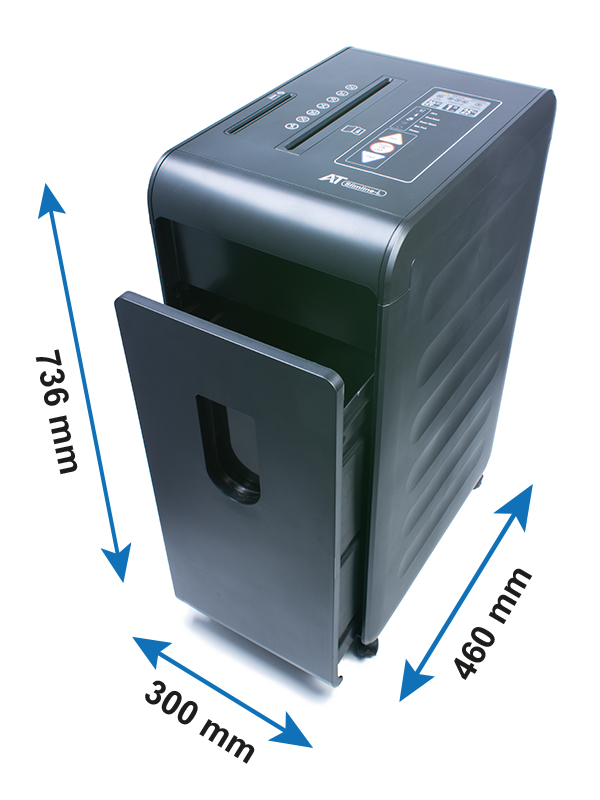 Popis:skartovač v křížovém řezu 2 x 10 mm, skartuje až 20 listů papíru gramáže 70 g/m2, navíc i CD/DVD, svorky, plastové karty, objem koše 40 l, doba skartace 60 min. Skartovací stroj z řady SLIM line pro maximální úsporu místa pod stolem. Stroj je úzký, ale zachovává si standardní hloubku. Přináší velké parametry, které zaberou málo místa. Stroj je standardně vybaven automatickým systémem start/stop, zpětným chodem a tepelnou pojistkou motoru proti přehřátí. - LED kontrolky s indikací zapnutí, zaseknutí papíru, plného nebo vysunutého koše a přehřátí- Výsuvná odpadní nádoba o objemu 40 l s průhledem pro optickou kontrolu plného koše- Lze skartovat sešívací a kancelářské sponky- Samostatný vstup na kreditní karty nebo CD a samostaný koš- Stupeň utajení dle vyhlášky č. 528/2005 - T - tajné. (P5)- Vhodný pro skartování dokumentů o šíři 230 mm- Součástí stroje jsou pojezdová kolečka- Tichý chod stroje pod 56 dB- Rozměry, mm ( v x š x h ) - 736 x 300 x 460Invertní motorSkartovací stroj AT Slimline L P5 je osazen novýminvertním motorem, který má několik předností:Tichý chod – hluk motoru spadá pod 51 dBa při skartaci je slyšitelné pouze drcení papíru.Stabilní výkon – oproti předchozí generaci DCmotorů nedochází k opotřebení magnetů a cívkya výkon se tedy nesnižuje ani po několika letech.