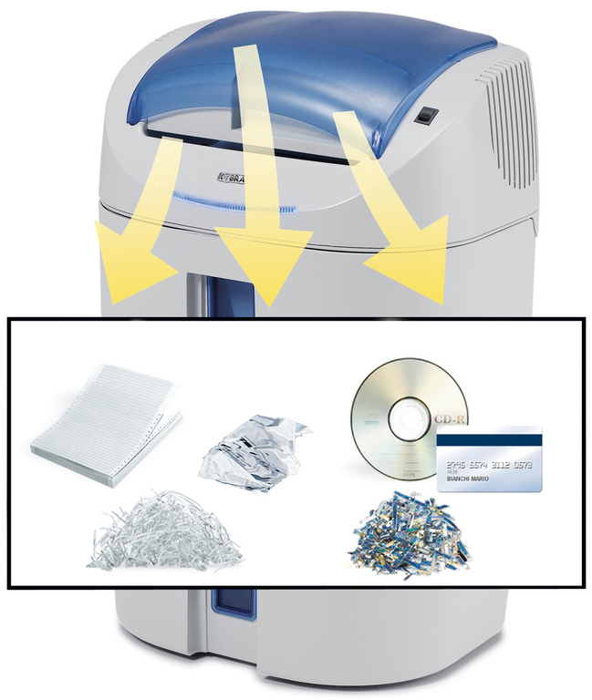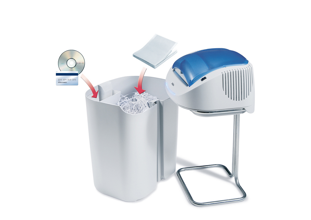 Popis:Osobní a stolní skartovačka se 3 funkcemi skartování a 2 sadami řezných nožů. Osobní a stolní skartovačka s průhledným otevíracím víkem. Skartovat lze až 14 listů najednou v křížovém řezu 3,5 x 40 mm (P-4) pouhým vložením do vstupního otvoru na přední straně. CD, DVD a kreditní karty skartuje jejich vložením do druhého vstupního otvoru. Skartuje také zmačkaný papír pomocí nového revolučního systému „Vhoď a skartuj“ se speciálním automatickým podavačem s otočnými klapkami. Tepelná ochrana motoru umožňuje 24 hodin nepřetržitého provozu motoru bez přehřátí. Uhlíkově tvrzené řezné nože si poradí i se sešívacími a kancelářskými sponkami. Skartovač vybaven systémem Energy Smart s účinným opticky osvětleným indikátorem pro úsporný pohotovostní režim a ochranu životního prostředí, automatickým Start&Stop, bezpečnostním zastavením a automatickým zpětným chodem v případě zaseknutí.Dvě samostatné integrované vyjímatelné odpadní nádoby o objemu 38,5 litru na papír a o objemu 1,5 litru na plasty, které nevyžadují plastové sáčky. Snadné vyprazdňování díky absenci nutnosti zvedání řezací hlavy. Přední průhledné okénko pro kontrolu stavu zaplnění odpadní nádoby.