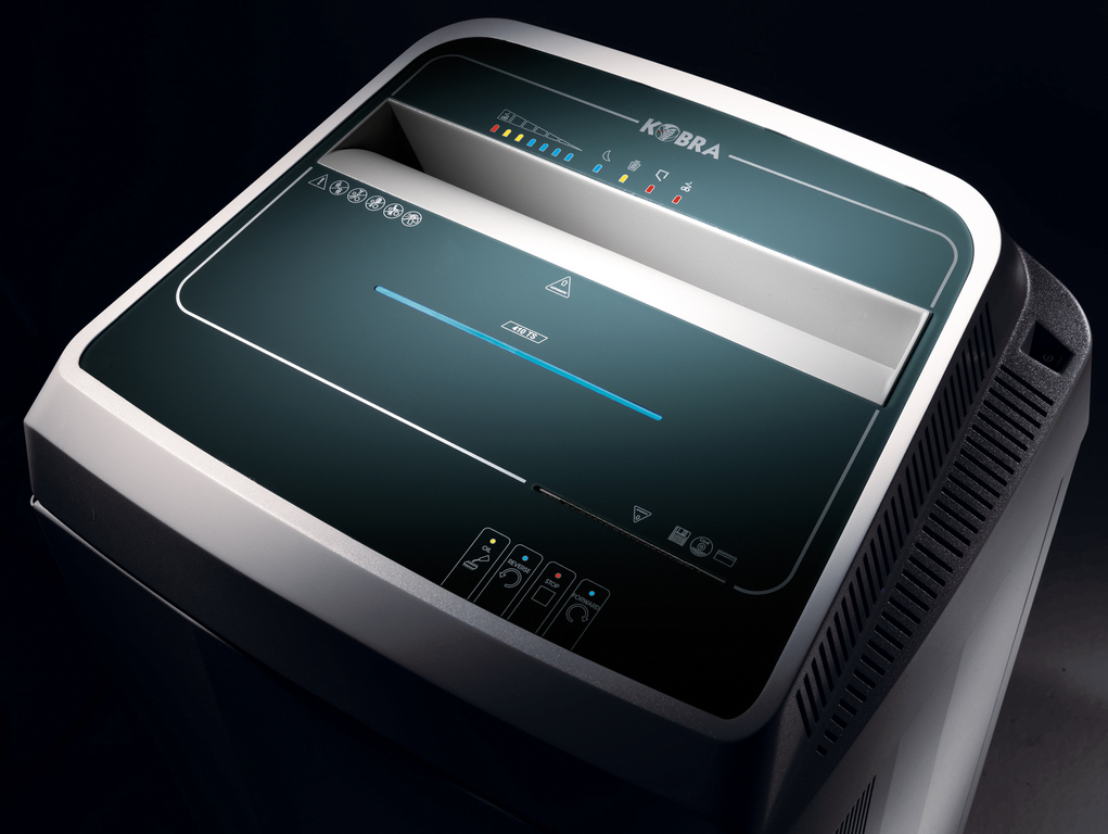 Popis:Profesionální skartovačka s dotykovou obrazovkou s vysokým zabezpečením pro velké kanceláře a centralizované použití. Profesionální skartovačka s dotykovou obrazovkou s vysokým zabezpečením vhodná ke skartaci dokumentů se stupněm utajení „Tajné“ a „Přísně tajné“. Všechny ovládací prvky se aktivují pouhým dotykem panelu. Tepelná ochrana výkonného 2600 W motoru umožňuje 24 hodin nepřetržitého provozu bez přehřátí. Skartovač Kobra 410 TS HS-6 dokáže skartovat list papíru na přibližně 16 000 mikročástic o rozměrech 0,8 x 5 mm (P-7), které jsou absolutně nečitelné i při použití speciálních elektronických zařízeních. Řezné nože z uhlíkové kalené oceli a odolný řetězový pohon s ocelovými převody nabízejí spolehlivost a odolnost proti opotřebení.Stroj je vybaven integrovaným automatickým mazacím systémem, EPC (elektronická regulace výkonu) pro optimalizaci skartování bez zaseknutí, systémem Energy Smart a automatickým odpojením od elektrické sítě pro maximální úsporu energie, automatickým Start&Stopem, bezpečnostním zastavením při otevření dveří a/nebo plném vaku s odpadem a automatický zpětný chod v případě zaseknutí. Robustní a velká kovová odpadní nádoba o objemu 205 litrů je umístěná na kolečkách.Dostupné volitelné příslušenství: 1,5 x 2 mm vysoce bezpečný křížový řez oddělená řezací jednotka pro CD/DVD/kreditní karty (oddělení skartovaných materiálů ve dvou koších) a systém detekce kovů.