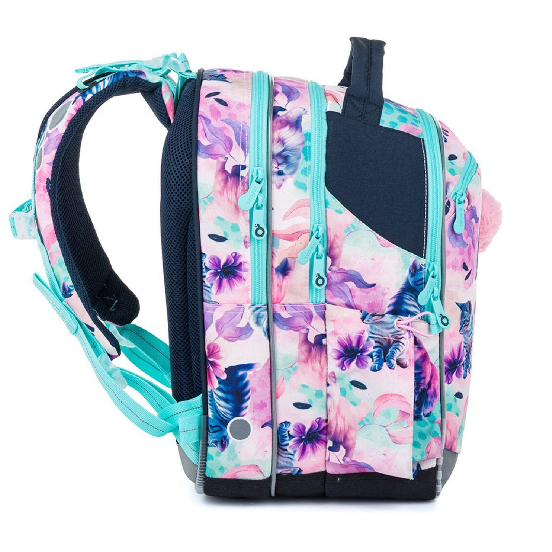 Jemný květinový motiv s pohádkovým detailem potěší malé parádnice a zároveň nabídne dostatek prostoru i pohodlí pro každý školní den.