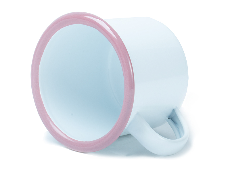 • náhled Smaltovaný plechový bílý hrnek 12 Oz - růžový lem