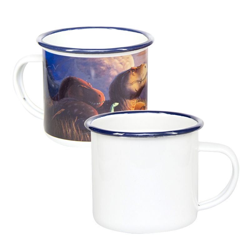 • náhled Smaltovaný plechový bílý hrnek SubliT 330 ml - modrý lem