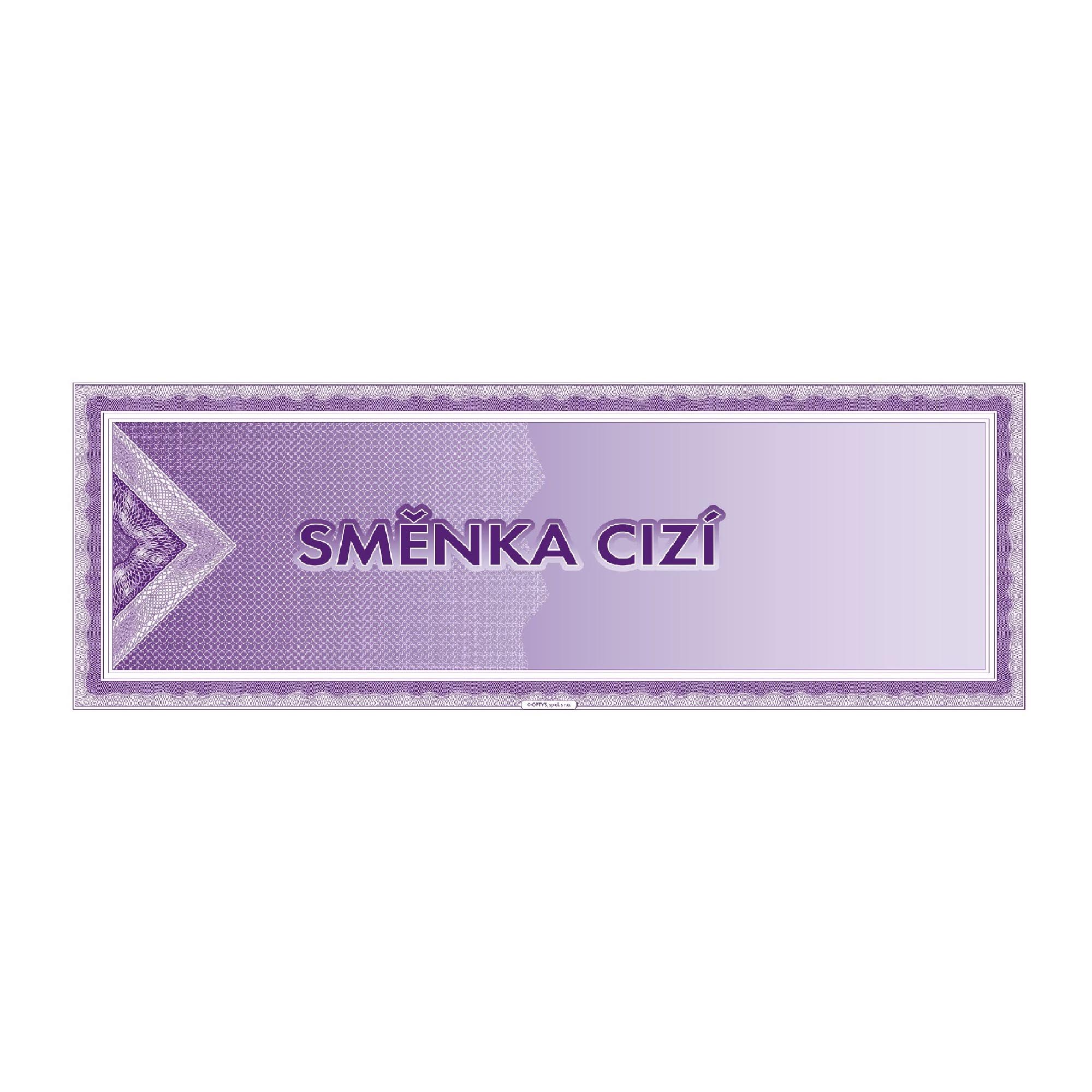 Popis:-nepropisující tiskopis -obsahuje 10 listů - směnek -formát 1/3 A4 -fialová obálka -slouží k transakci mezi třemi subjekty: výstavcem směnky,