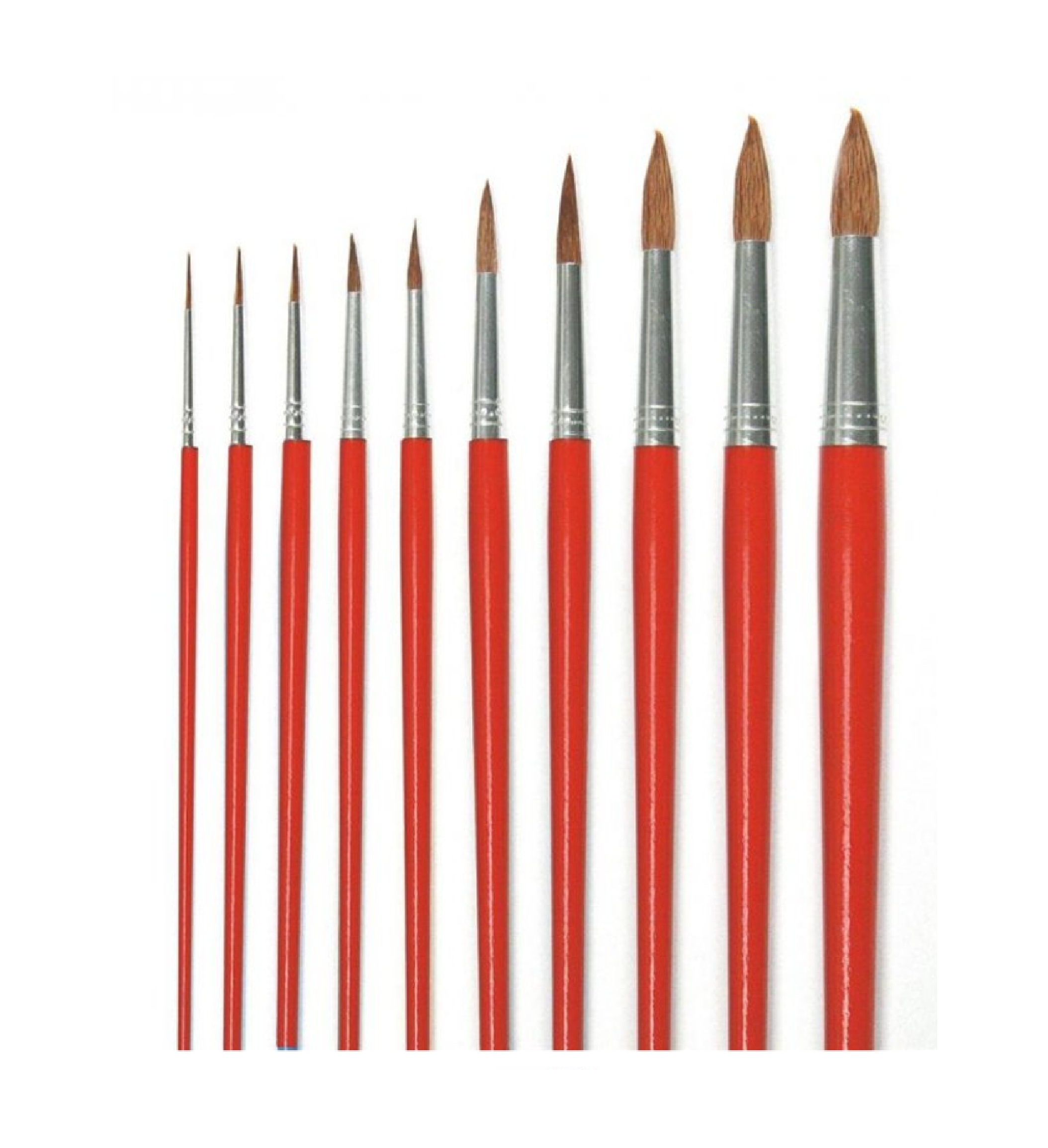 Popis:Štětec kulatý Tempus č.1Štětec vhodný ke školnímu použití při akvarelových technikách a na temperovou malbu. Štětec s vlasem pony, kulatý, chromovaná mosazná zděř, krátká oranžově lakovaná násadka.