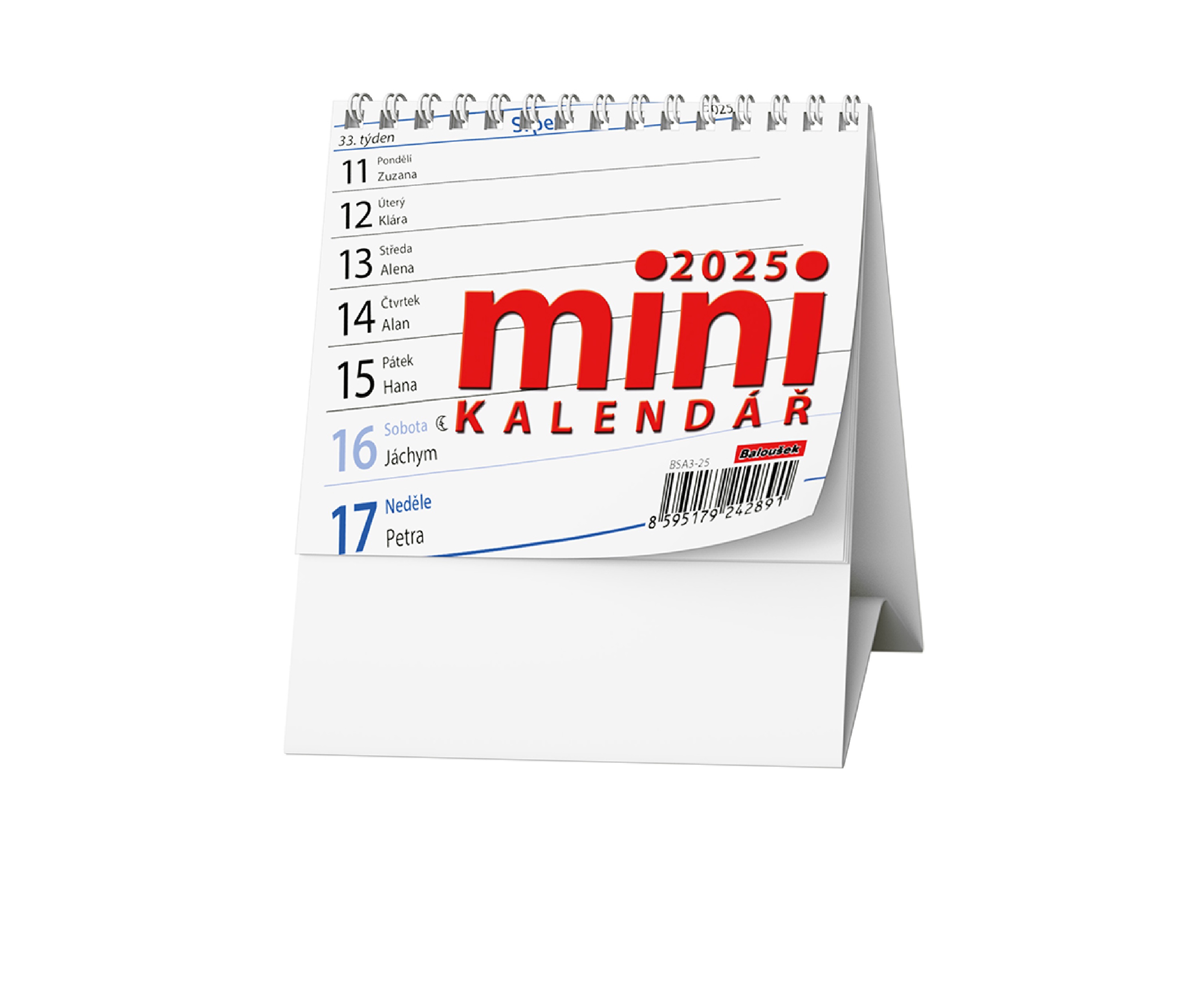 Popis:Praktický stolní kalendář s týdenním kalendáriem v mini formátu.