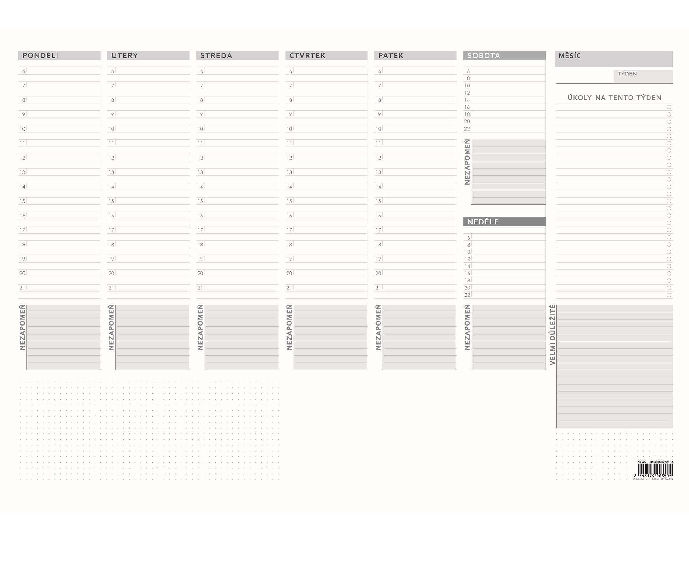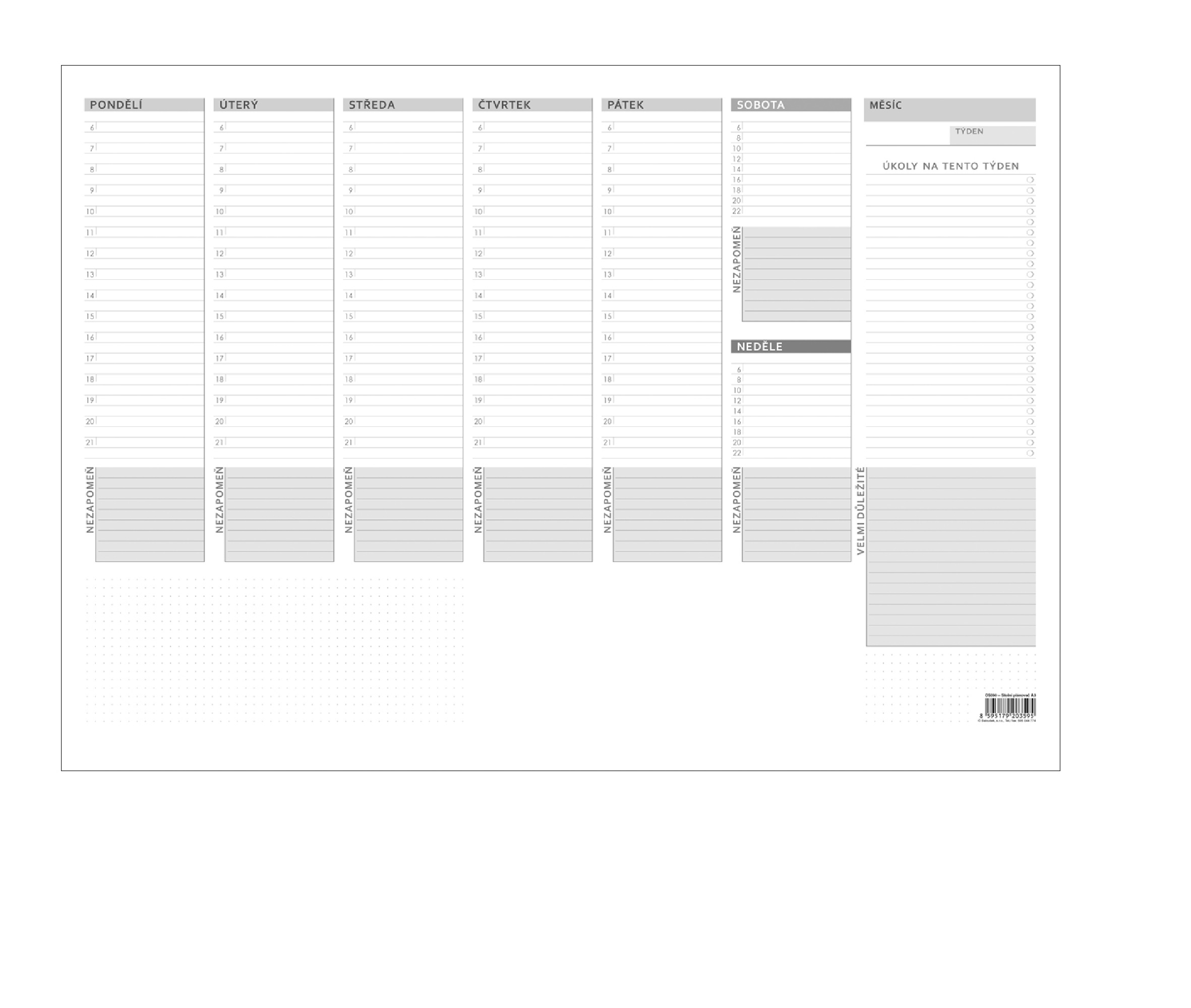 Stolní plánovač týdenní A3