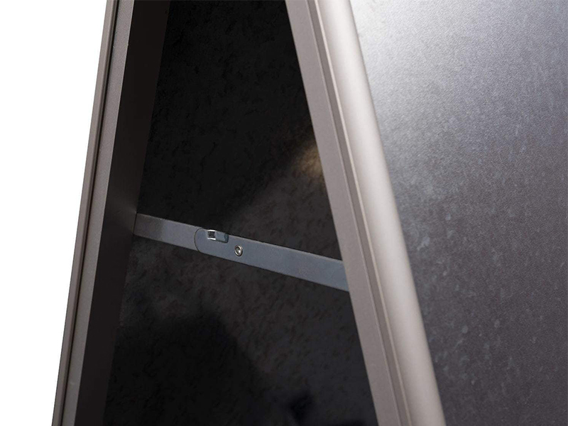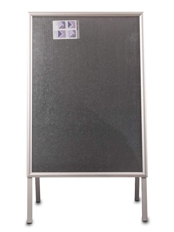 Popis:Reklamní A stojan s ostrými rohy a stříbrným rámem B1. Tento produkt je výjimečně pevný a odolný systém, vyrobený výhradně z kovu. Jeho zadní strana je vyrobena z pozinkovaného ocelového plechu. Díky tomu lze cedulku používat venku, ale za omezených větrných podmínek. Systém zaklapávacího rámu umožňuje umístit plakát dovnitř. To trvá jen několik sekund. Silný plakátový obal je vybaven UV filtrem, který chrání výtisk před slunečním zářením a vyblednutím barev. Zaklapávací rám cedulky je vyroben z 25 mm eloxovaného hliníkového profilu.Rozměr plakátové plochy: B1 (707x1000 mm)Výška postaveného produktu: 130 cm