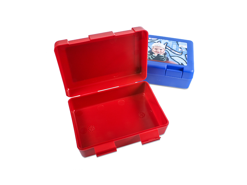 • detail Svačinová krabička s potisknutelným štítkem - červená