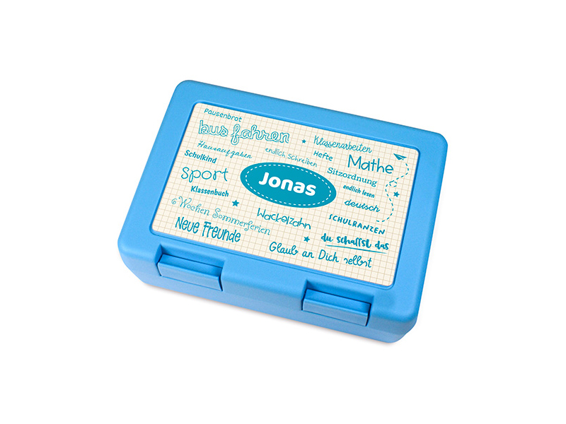 • detail Svačinová krabička s potisknutelným štítkem - světle modrá