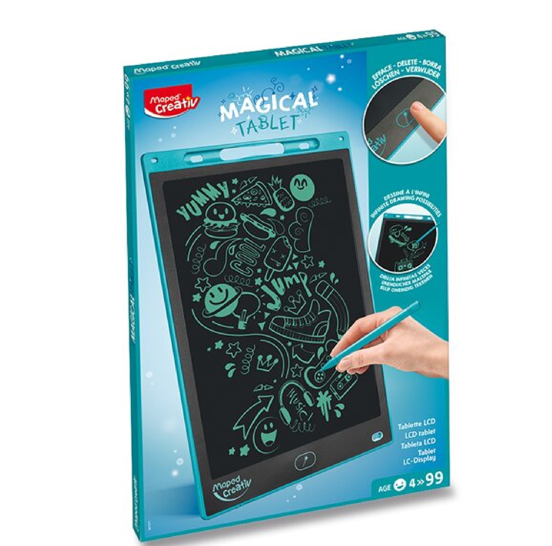 Popis:Magický tablet Maxi s LCD obrazovkou přestavuje zábavu nezávislou na elektrické energii a připojení k wifi. Je skvělý pro zabavení dětí na cestách, u lékaře apod. Lze ho použít i jako tabulku na rodinné vzkazy.