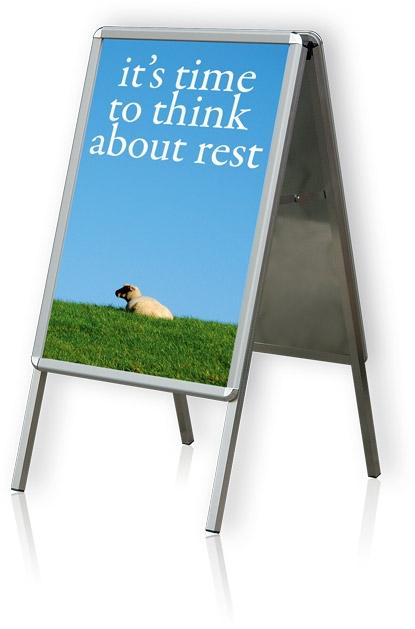 Popis:A reklamní stojan. Reklamní A stojan s kulatými rohy, hliníkovým rámem o profilu 32 mm a rychloupínacím systémem klip rám. Ideální pro všechny velikosti plakátů. Použitý materiál je eloxovaný hliník. Obsahuje průhlednou krycí antireflexní fólii s ABS povrchem, která zamezuje poškození plakátu.