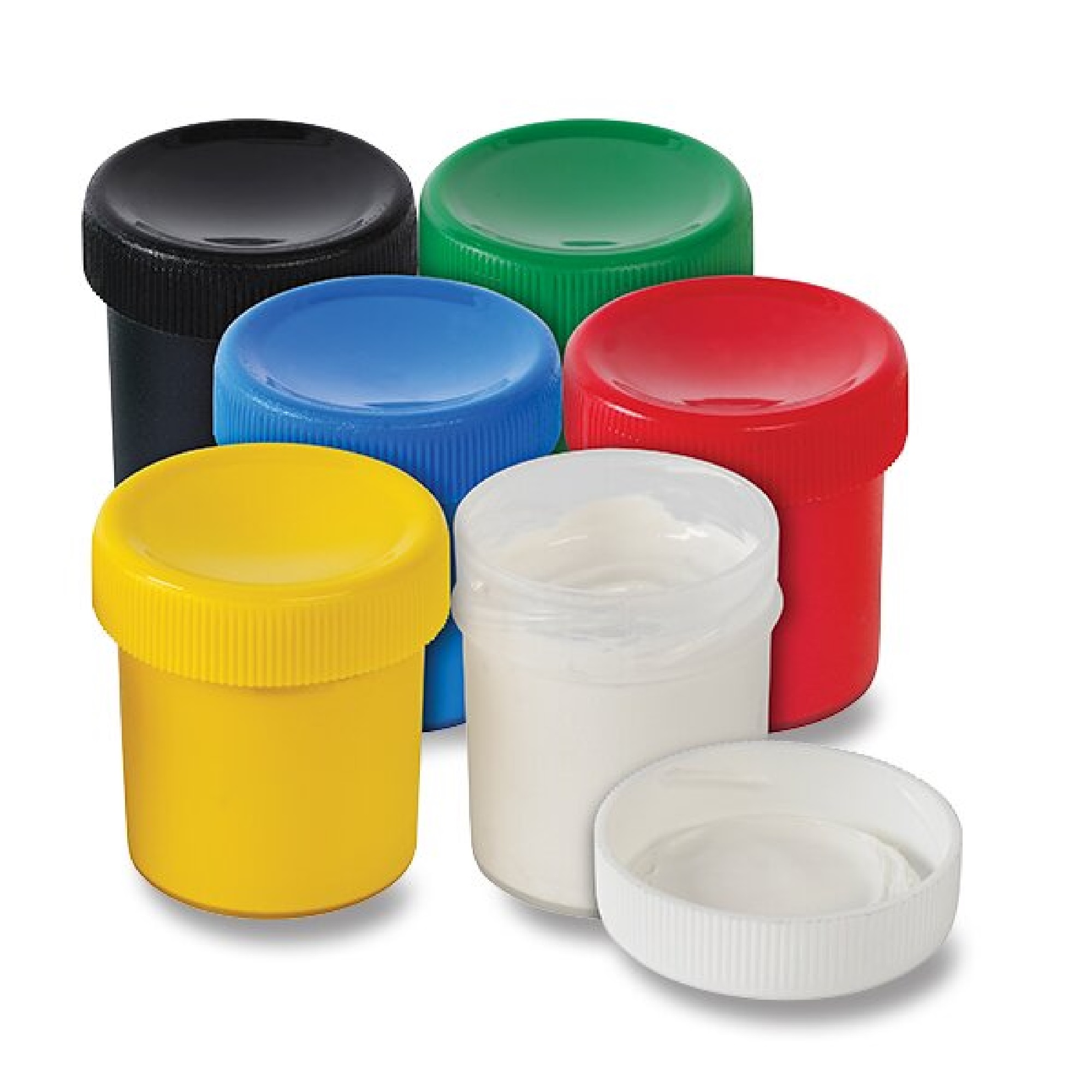 Souprava 6 kusů temperových barev v praktickém kelímku se šroubovacím víčkem.