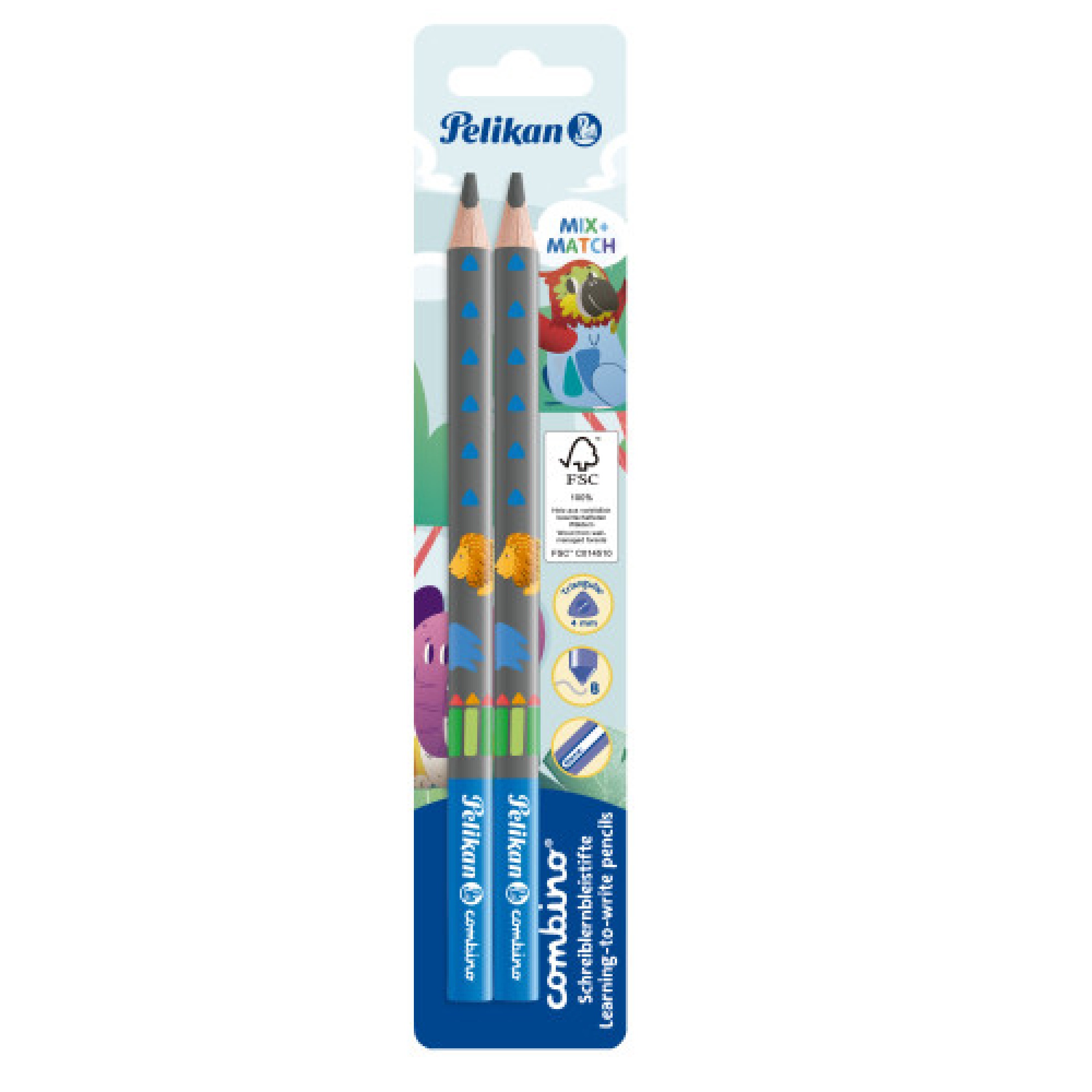 Popis:modrá silná Pelikan Combino, ergonomická, lesní certifikace FSC, tělo s modrými prvky a zvířátky, se jmenovkou, na blistru