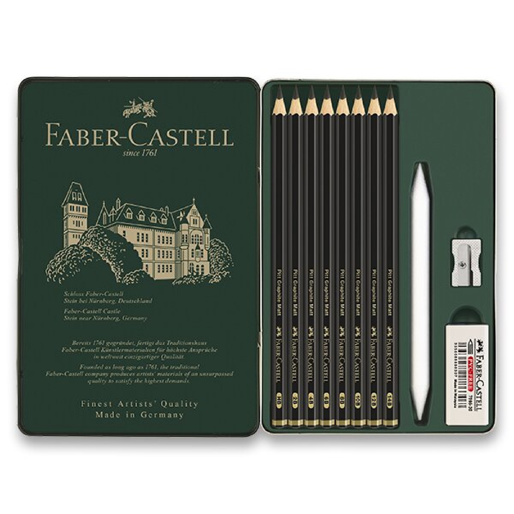 obsahuje grafitové tužky trvdosti HB, 2B, 4B, 6B, 8B, 10B, 12B, 14B