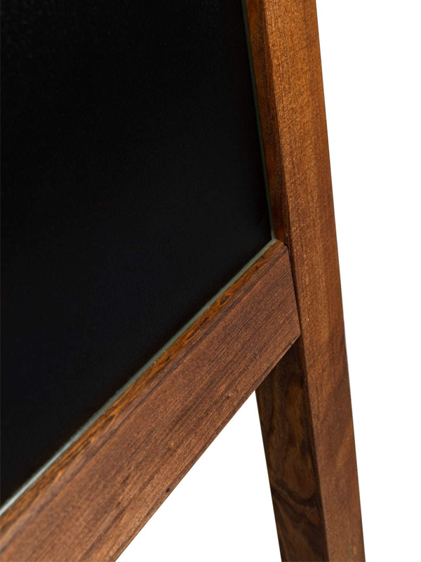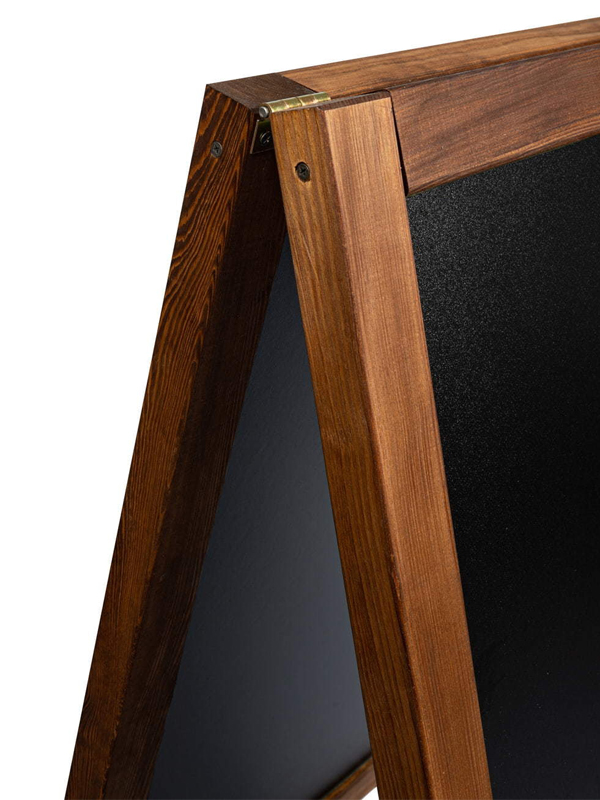 Popis:Venkovný dřevěnný stojan PRO 118 x 65 cm Profesionální venkovní dřevěný reklamní stojan určený pro provozovny, které chtějí efektivně komunikovat akce, denní nabídky nebo zvýšit viditelnost své značky směrem k okolí.Hlavní vlastnosti produktu Odolnost vůči povětrnostním vlivům: Díky speciální povrchové úpravě odolává stojan slunci, dešti, sněhu, větru i extrémním teplotám, takže jej můžete ponechat venku po celý rok. Robustní a stabilní konstrukce: Masivní rám s profilem 6 cm zajišťuje stabilitu i při nárazovém větru. Celková hmotnost přibližně 21 kg přispívá k pevnosti a bezpečnému umístění. Kvalitní borovicové dřevo: Přírodní borovicové dřevo dodává stojanu elegantní vzhled a zároveň vysokou pevnost, díky které dobře zapadne do venkovního prostředí. Velká psací plocha: Plocha 53 × 80 cm nabízí dostatek prostoru pro menu, akční sdělení i jiné informace. Popisovatelný povrch: Plocha je popisovatelná křídovým fixem i klasickou křídou, takže obsah snadno měníte podle aktuální potřeby. Barva a provedení: Přírodní dřevěný rám v kombinaci s černým popisovatelným povrchem působí profesionálně a hodí se k různým typům exteriérů. Rozměry: Celkový rozměr stojanu je 118 × 65 cm (výška × šířka). Záruka: Standardní záruka 24 měsíců.Vhodné použitíStojan je vhodný pro restaurace, kavárny, bistra, obchody a služby. Umožní vám rychle a přehledně sdělit kolemjdoucím aktuální nabídku a přivést je dovnitř.